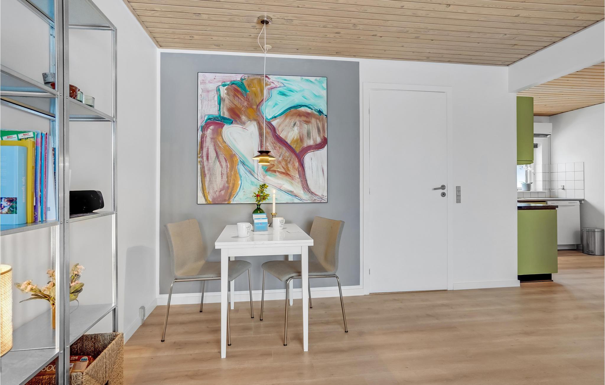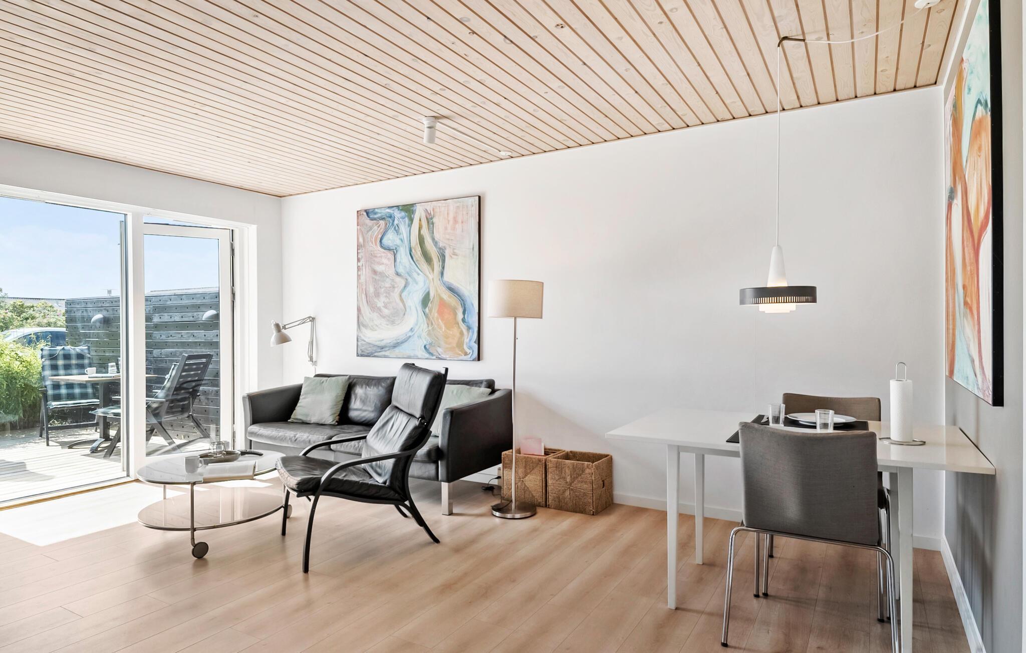 Das Ferienhaus wirkt sehr hell und einladend. Das gemütliche Ess- und Wohnzimmer ist mit einem großen Fenster ausgestattet, das ein schönes Licht in den Raum wirft. Vom Wohnzimmer aus gelangt man auf die schöne, nach Süden ausgerichtete Terrasse, wo man über dem Grill und bei einem Drink in der Hand die vielen bezaubernden Eindrücke und Düfte genießen kann, die Skagen bietet.