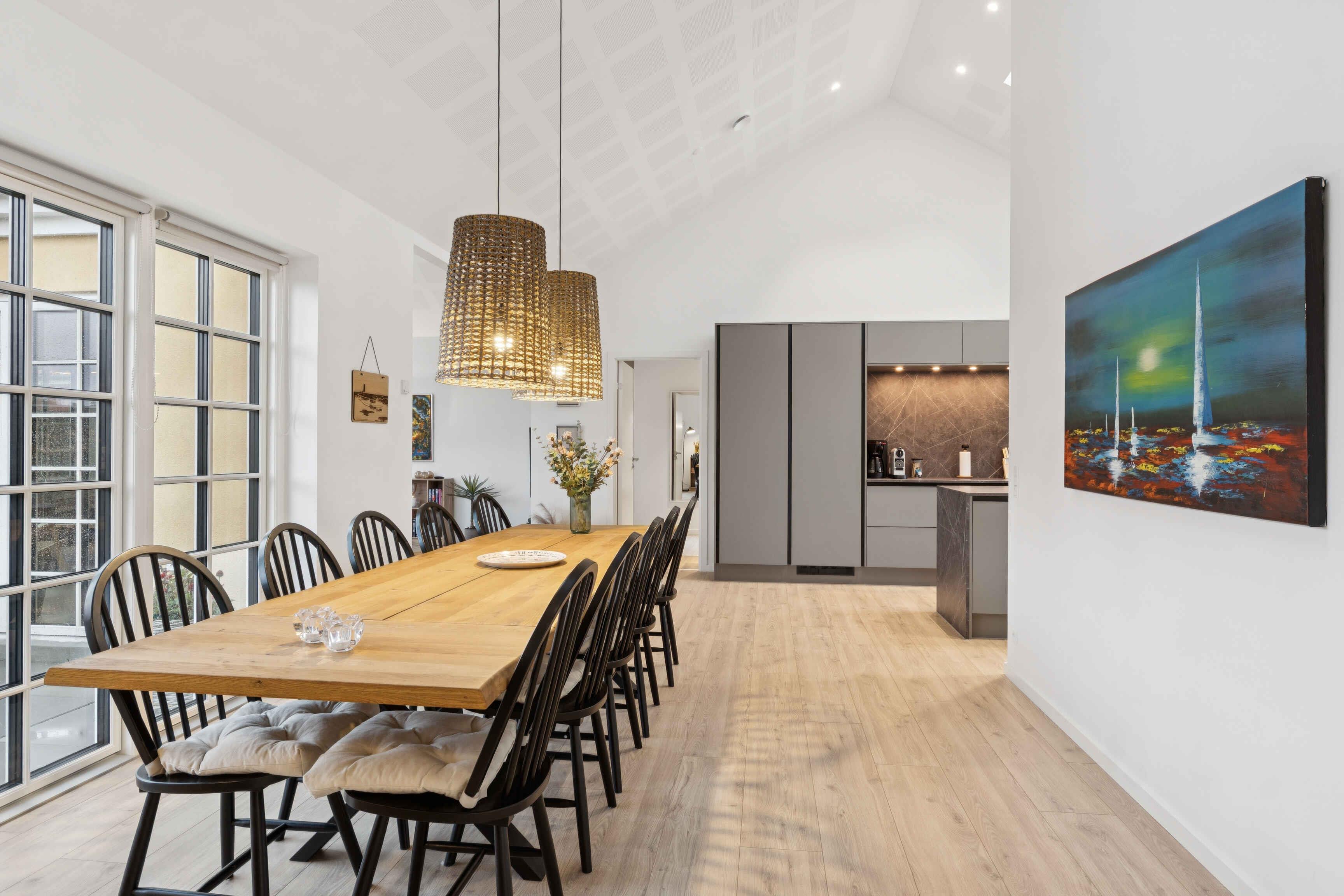 Verbringen Sie einen wunderbaren Urlaub in diesem hellen und geräumigen Ferienhaus im Herzen von Skagen. Das Ferienhaus verfügt über ein stilvoll eingerichtetes Wohn- und Esszimmer mit hochwertiger Ausstattung. Dank der hohen Decken ist es der perfekte Ort für einen entspannten Familienurlaub voller spannender Erlebnisse. Im modernen, offenen Küchenbereich können Sie köstliche Gerichte zubereiten und den Abend anschließend auf den weichen Sofas genießen. Vielleicht haben Sie Lust auf eine Runde Brettspiele am großen Esstisch, begleitet von Snacks. Auf der großzügigen Terrasse lassen sich Sommerabende beim Grillen und mit leckeren Drinks in guter Gesellschaft wunderbar verbringen. Durch die zentrale Lage des Hauses können Sie die vielen Attraktionen von Skagen ganz leicht entdecken. Besuchen Sie das Skagens Museum und tauchen Sie ein in die Welt der berühmten Skagen-Maler. Machen Sie einen Ausflug nach Grenen und erleben Sie das einzigartige Naturphänomen, bei dem sich Nordsee und Ostsee treffen. Ziehen Sie feste Schuhe an und unternehmen Sie einen Spaziergang durch die beeindruckende Dünenlandschaft entlang des wunderschönen Sandstrands.