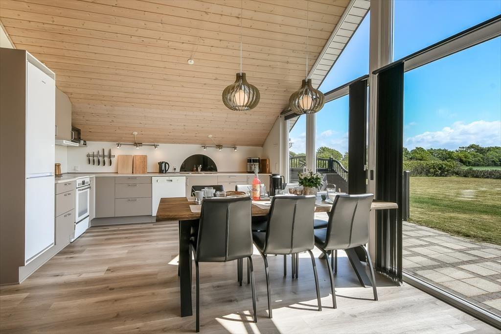 Der Sortbærvej liegt friedvoll in der südöstlichen Ecke eines in sich geschlossenen Ferienhausgebiets, das sich aufgrund seiner vielen kleinen Pfade, des Spielplatzes und der grünen Umgebung bestens für einen Familienurlaub eignet. Die kurze Entfernung zum Wasser ist ein zusätzlicher Pluspunkt. Skaven Strand spricht kleine und große Urlauber gleichermaßen an. Mit deinen Kindern kannst du im flachen Wasser planschen, vom Badesteg aus Krebse fangen und die kleinen Boote im Hafen anschauen. Falls du es aktiver magst, brichst du per Surfbrett oder Kite in See. Die reizvolle Küstenlandschaft erkundest du zu Fuß oder per Fahrrad - beispielsweise bei einem Ausflug zur wunderschönen Skjern Enge.