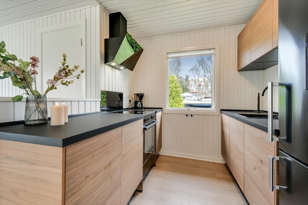 Auch draußen setzt sich die entspannte Stimmung nahtlos fort. Das Grundstück ist von hohen Bäumen und dichten Büschen umgeben, sodass du deine Privatsphäre genießen kannst, während die Sonne die Terrasse wärmt und Vögel in den Baumkronen zwitschern. Nimm deinen Morgenkaffee einfach im Schlafanzug und barfuß mit nach draußen – oder hole die Marshmallows hervor und entfache das Lagerfeuer, wenn die Sonne untergeht und der Himmel sich orange färbt hinter den Wipfeln. Es gibt reichlich Platz zum Sonnenbaden oder Spielen im grünen Gras, und du wirst schnell merken, wie der Alltagsstress verfliegt, während du deinen eigenen Rhythmus zwischen Gartenstuhl und frischer Fjordluft findest.