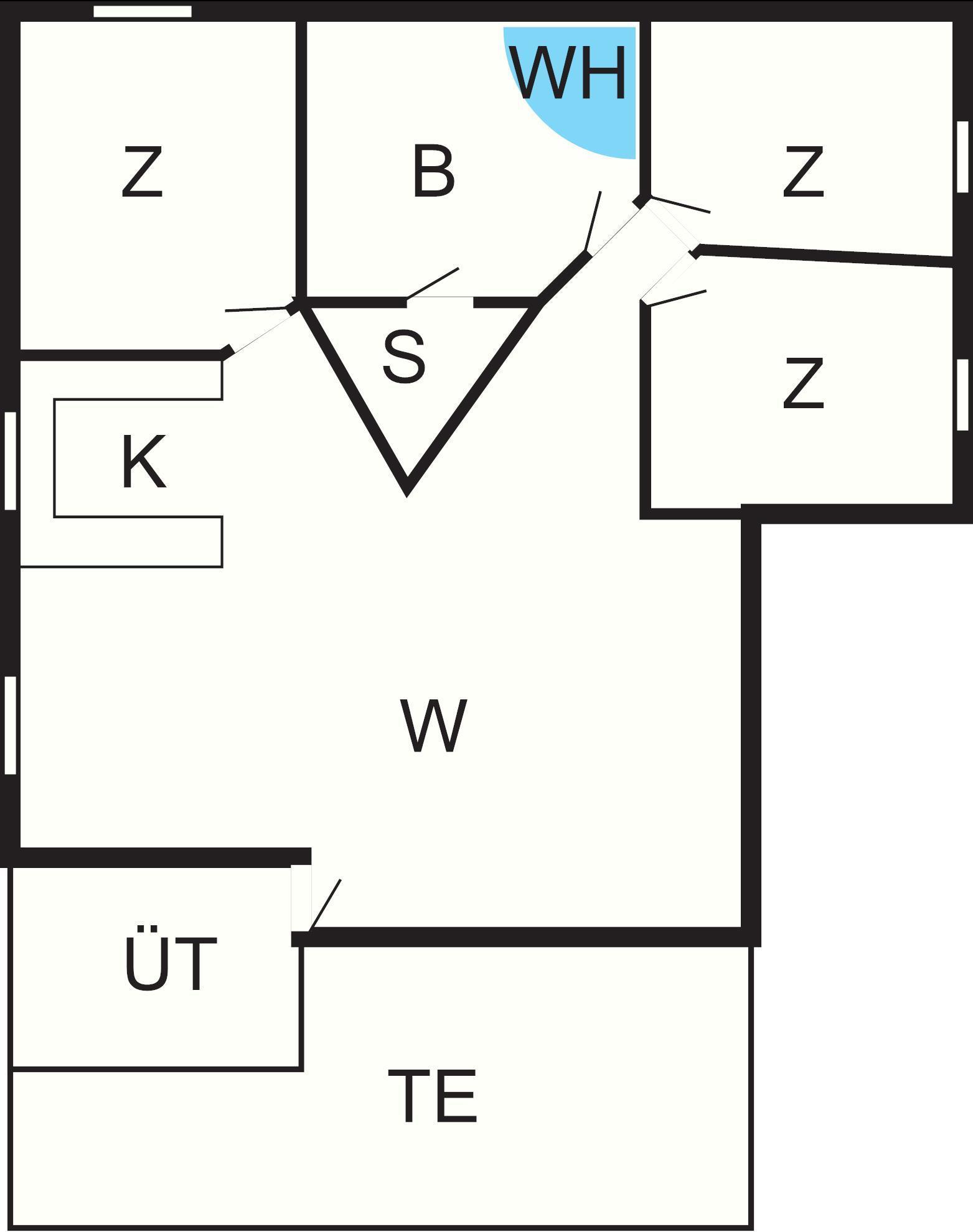 Bad: WC, Waschb., Dusche, Fußbodenheiz.
