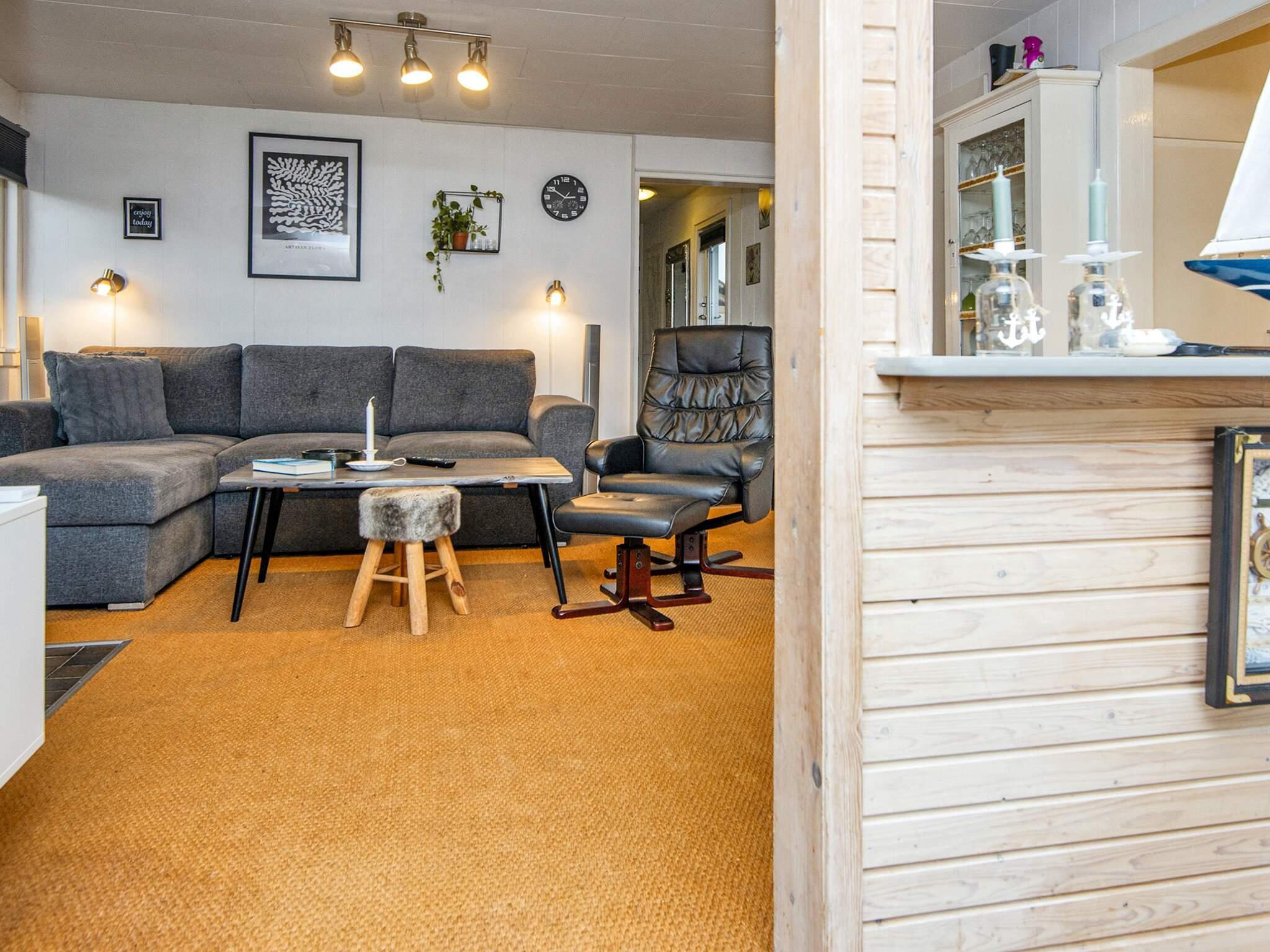Das Haus verfügt über eine Küche, ein Wohnzimmer und einen Wintergarten u und wird mit einer energiesparenden Wärmepumpe und einem Holzofen beheizt. Draußen gibt es eine überdachte Holzterrasse, auf der Sie Ihr Abendessen genießen können. Das Haus liegt ruhig auf einem abgeschirmten Grundstück, nur etwa 300 m vom Fjord.