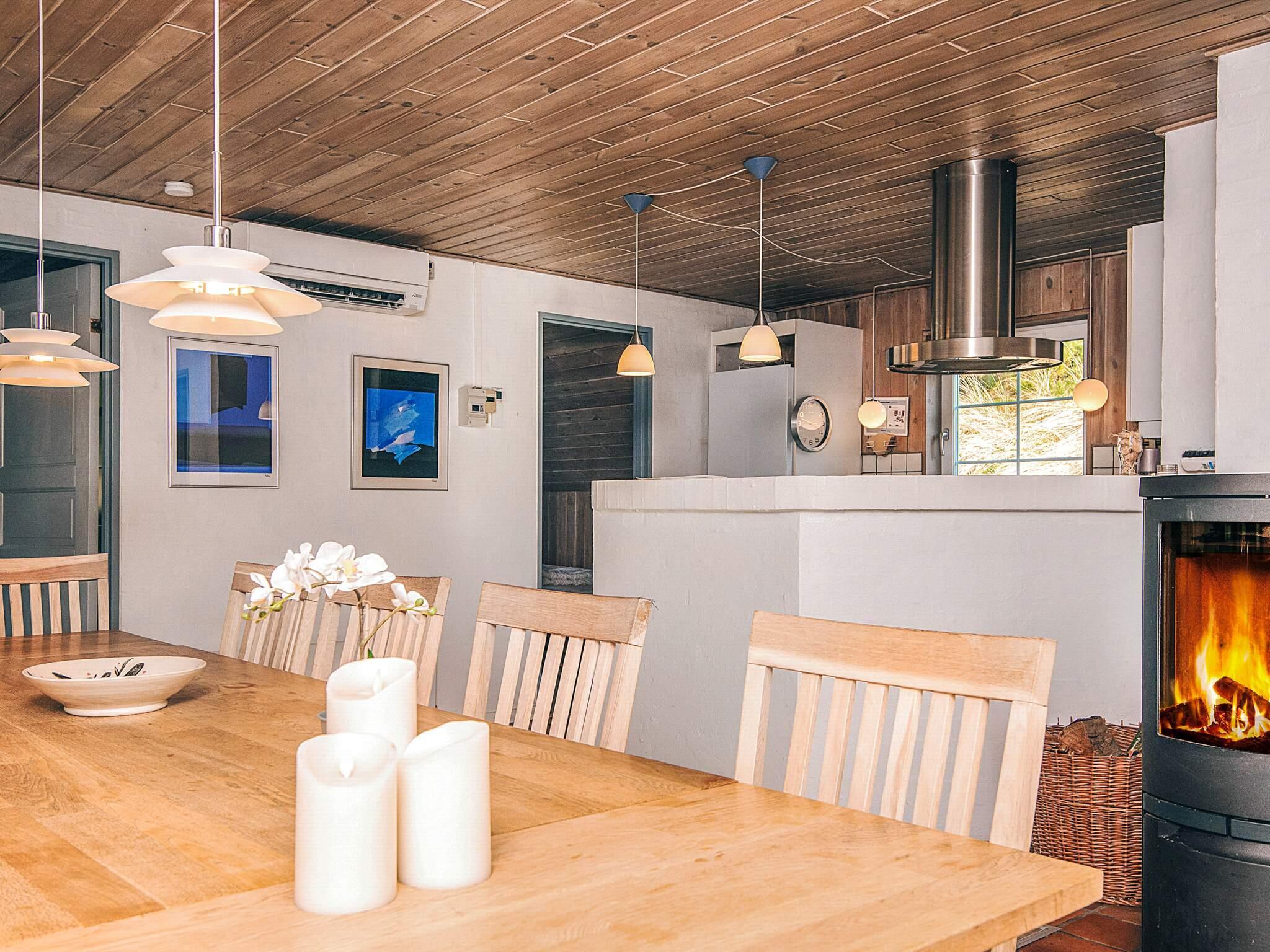 Dieses Ferienhaus liegt attraktiv zwischen dem Ringkøbing Fjord und der Nordsee, wo die gut besuchten Städte Hvide Sande und Søndervig viel zu bieten haben. Dieses 180 m² große, reetgedeckte Poolhaus wurde 1989 erbaut und 2006 renoviert. Das Backsteinhaus liegt auf einem 2.500 m² großen, hügeligen Naturgrundstück, nur ca. 850 m von der Nordsee entfernt.
