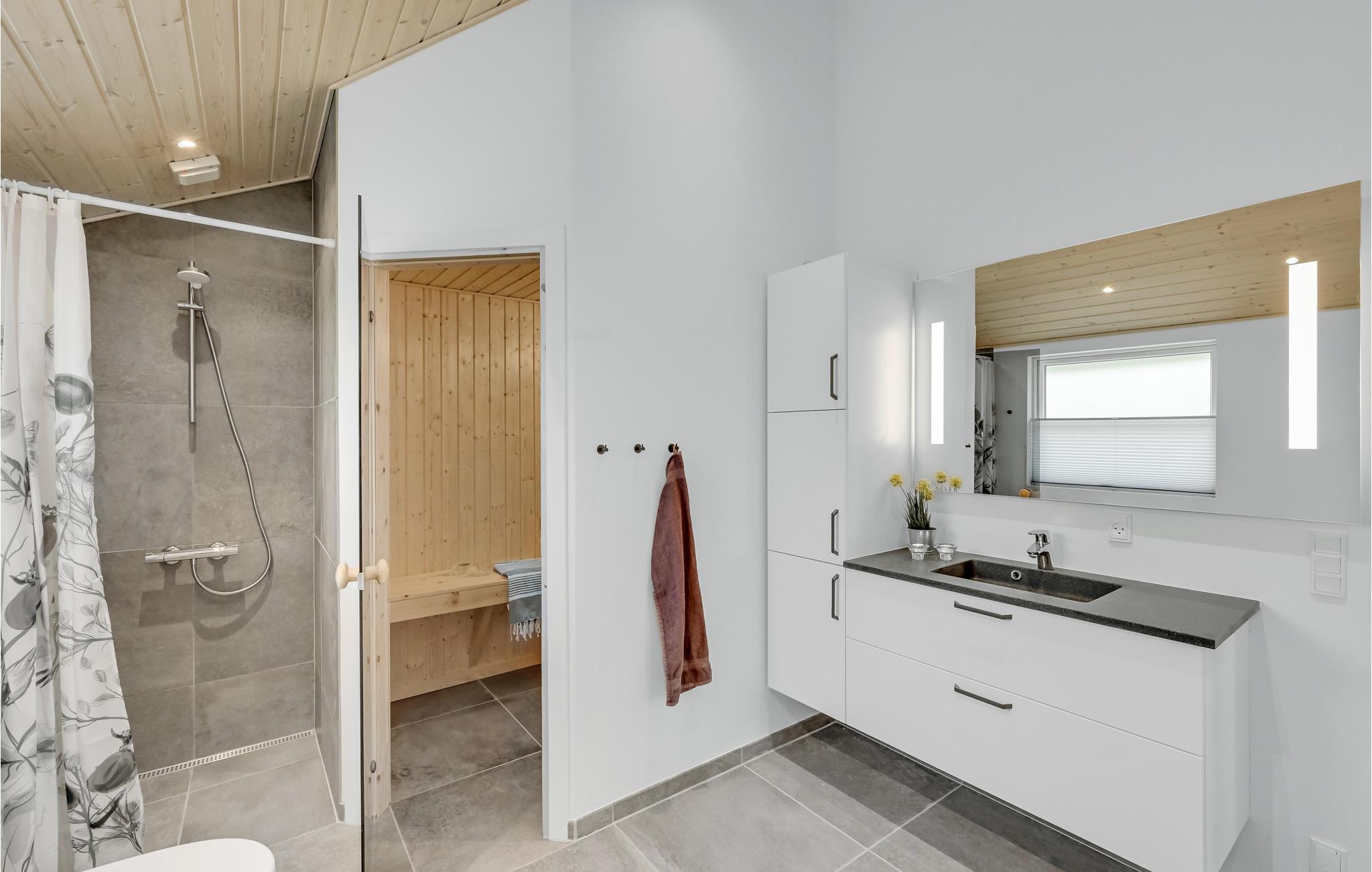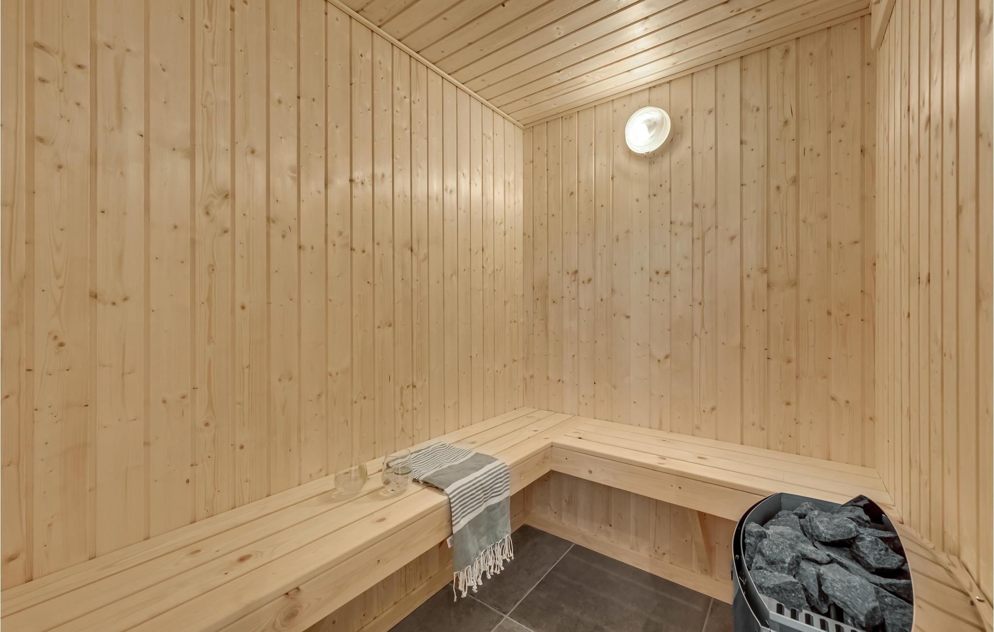Verbringen Sie eine erholsame Zeit im einladenden Ferienhaus, von dem Sie zu Fuß den Strand erreichen. Es bietet mit hellen Räumen und modernem Komfort einen schönen Rahmen für Ihre Auszeit vom Alltag. Entspannen Sie in vollen Zügen in der Sauna. Speisen Sie gemeinsam mit schönem Blick ins Freie durch die große Fensterfront, lassen Sie das Abendessen am langen Esstisch nahtlos in einen Spieleabend übergehen und sorgen Sie mit einem Feuer im Kaminofen für eine gemütliche Stimmung.