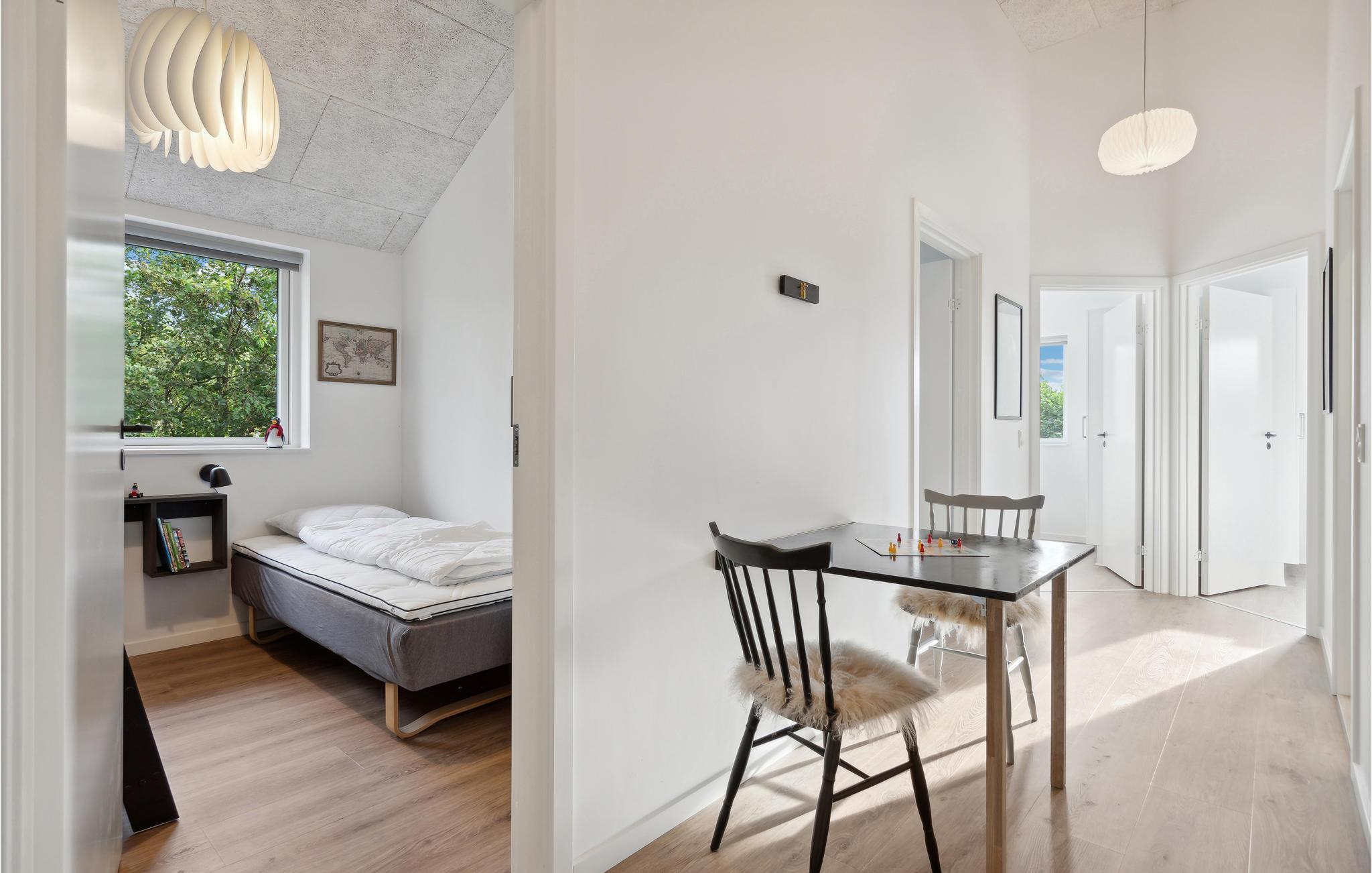 Willkommen in diesem einladenden Ferienhaus, das Sie in schöner Lage nahe dem Fjord erwartet. Helle Räume und zahlreiche Fenster, durch die Sie einen schönen Blick ins Grüne genießen, sorgen dafür, dass Sie hier vom ersten Tag entspannen. Der offene Wohnbereich wird schnell zum Zentrum der gemeinsamen Aktivitäten. Genießen Sie den wunderbaren Blick in den Garten durch die große Fensterfront und plaudern Sie nach einem Saunagang abends noch lange beim gemütlichen Knistern des Kaminofens.