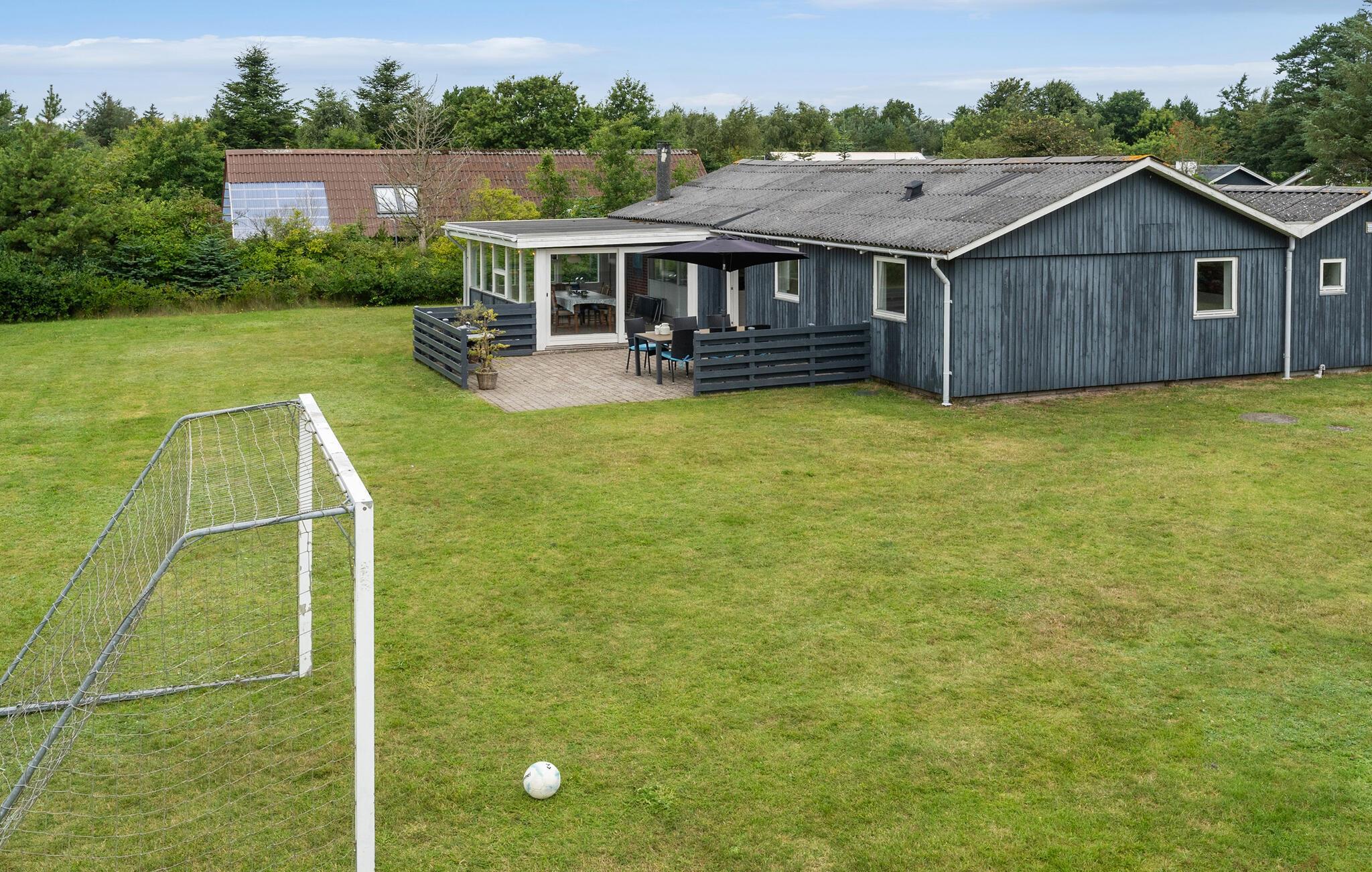 Verlegen Sie das Urlaubsleben nach draußen auf die Terrasse. Die weitläufige Rasenfläche lädt zum Ballspielen ein, während die Shelterhütte ein schöner Rückzugsort ist. Abends kommt die ganze Familie an der kleinen Feuerstelle zusammen.