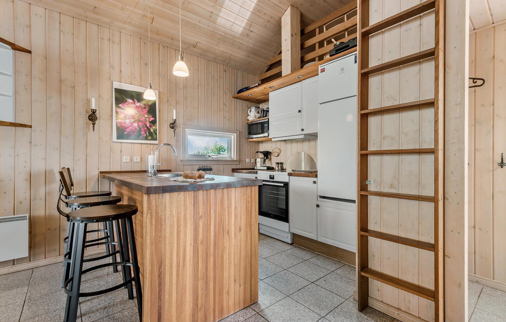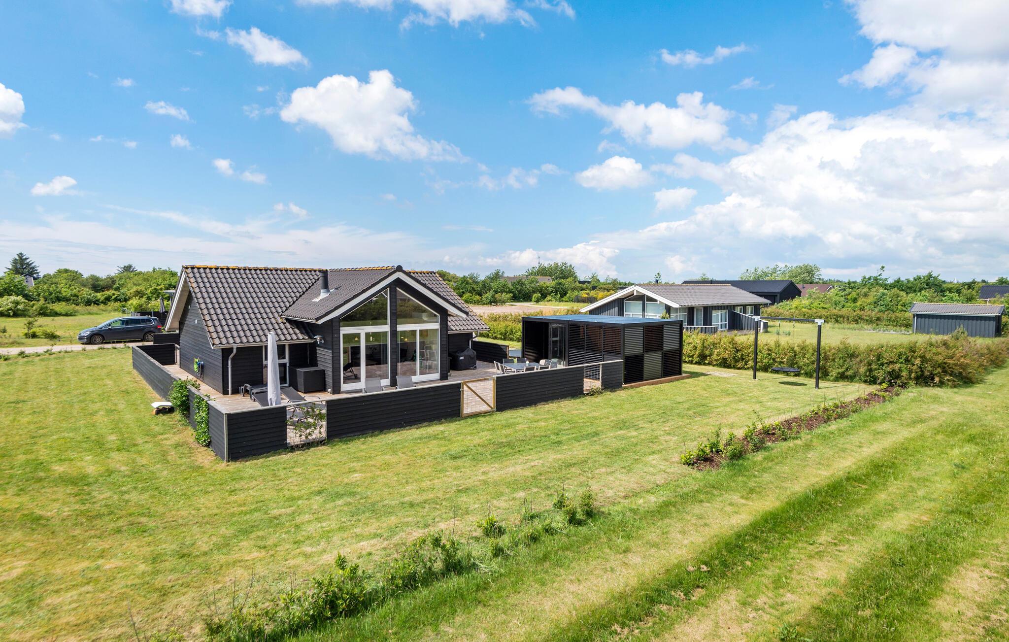 Genießen Sie Komfort, Sauna und Seeblick in diesem hellen Ferienhaus am Skaven Strand.