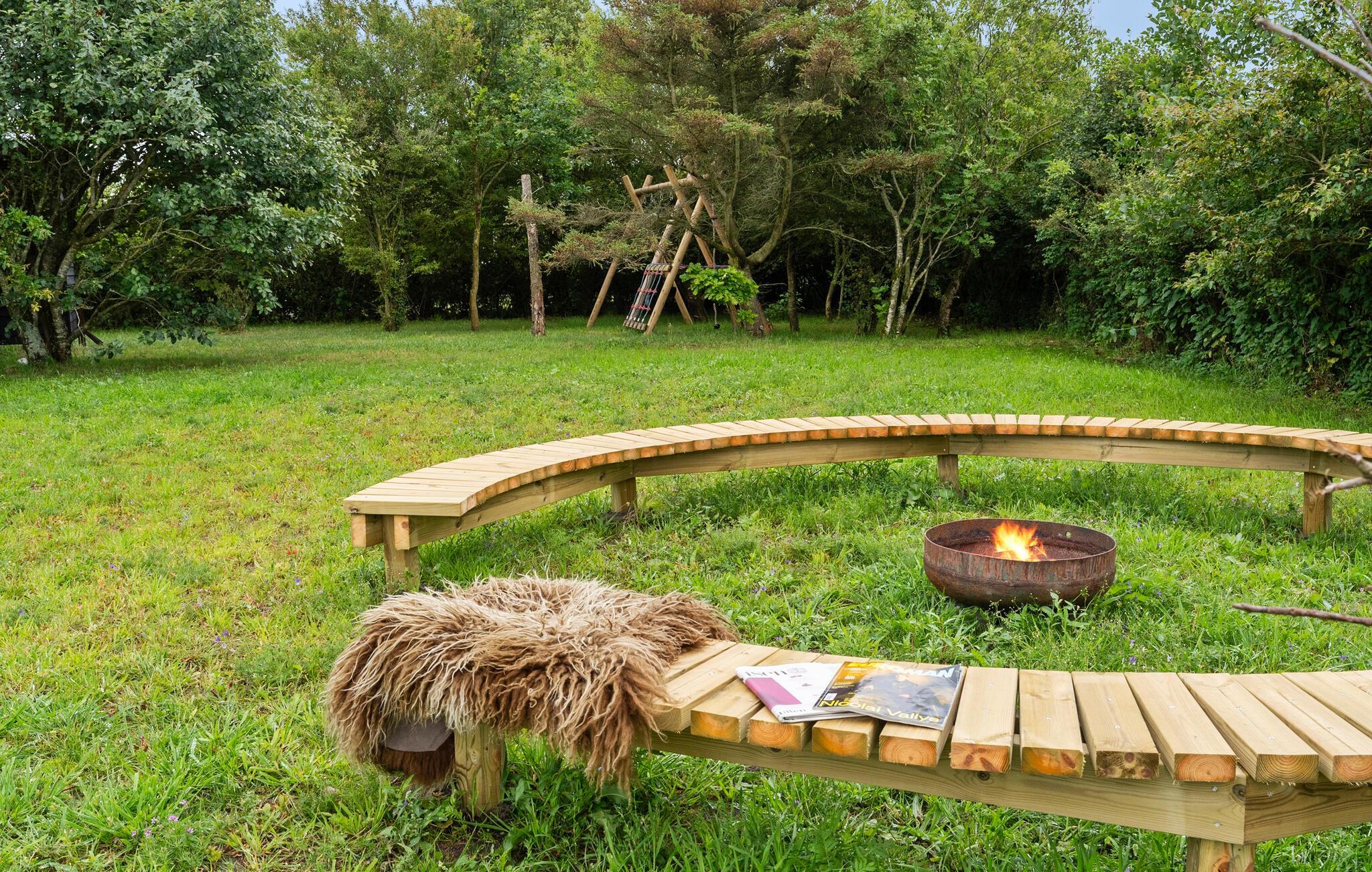 Treten Sie morgens in den großen grünen Garten und genießen Sie die Ruhe bei einer Tasse duftenden Kaffees. Erfrischen Sie sich im Whirlpool oder entspannen Sie an kühleren Tag im Finnischen Holzbad oder in der Sauna. Kommen Sie abends an der Feuerstelle zusammen und backen Sie knuspriges Stockbrot überm Feuer, während in der Dämmerung die Sterne zu blinken beginnen.