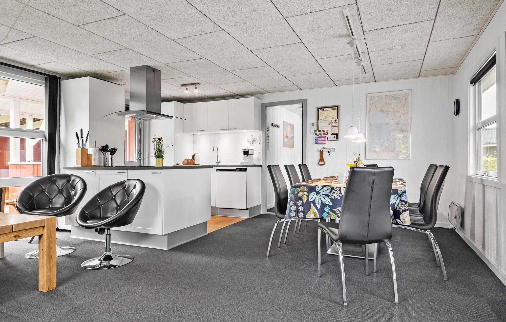 Freuen Sie sich auf Ihren Urlaub in diesem Ferienhaus mit vielen schönen Annehmlichkeiten. Die moderne, offene Küche lädt dazu ein, köstliche Mahlzeiten zuzubereiten. Kochen Sie gemeinsam mit der Familie oder Ihren Freunden und genießen Sie gesellige Abende. Der kombinierte Wohn- und Essbereich bietet einen Esstisch mit Platz für alle und eine komfortable Sofaecke, wo Sie sich entspannen und die freie Urlaubszeit in vollen Zügen genießen können. Nutzen Sie auch die Sauna, um Ihre Tage entspannt ausklingen zu lassen.