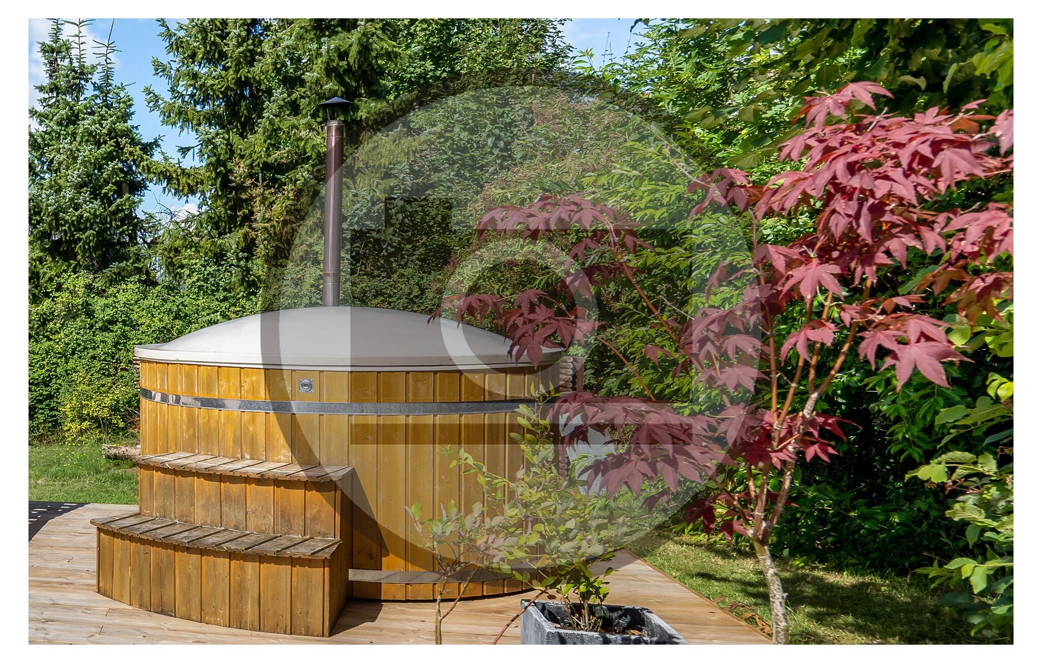 Genießen Sie auf der Terrasse den Morgenkaffee in der Sonne oder lange Abende unter dem Sternenhimmel, das finnische Holzbad bietet pure Entspannung im Freien.
