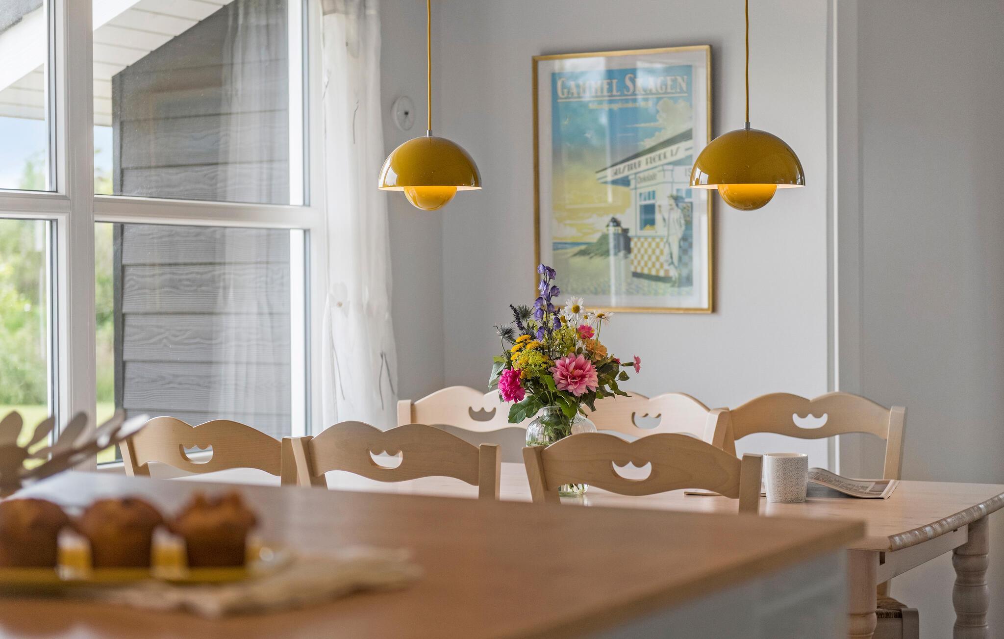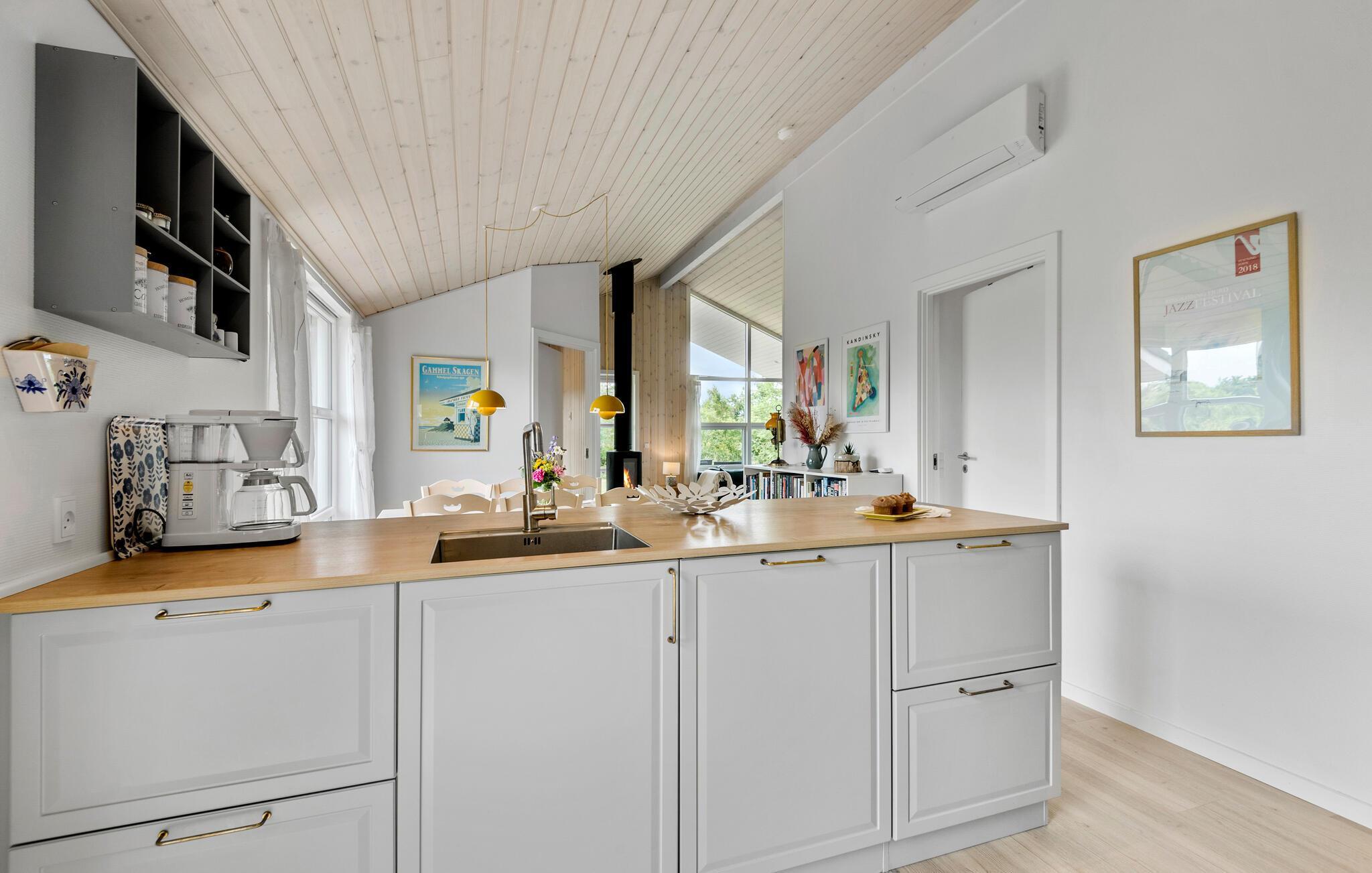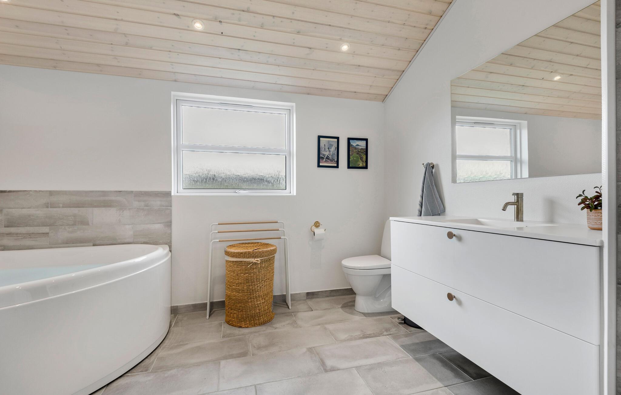 Das schöne Ferienhaus im neueren Teil von Skaven Strand erwartet Sie mit einer ansprechenden Kombination aus moderner Eleganz und gemütlichem Charme. Die offene und helle Gestaltung des Wohnbereichs, ausgestattet mit hochwertigen Möbeln und einer voll ausgestatteten Küche, lädt zum Verweilen und Entspannen ein. Die großen Fenster lassen viel Licht herein und bieten Ihnen einen herrlichen Blick auf die Umgebung. Das geräumige Wohnzimmer mit Kamin schafft eine warme Atmosphäre, perfekt für gemütliche Abende. Entspannen Sie auch in der Sauna und lassen Ihre Alltagssorgen hinter sich.
