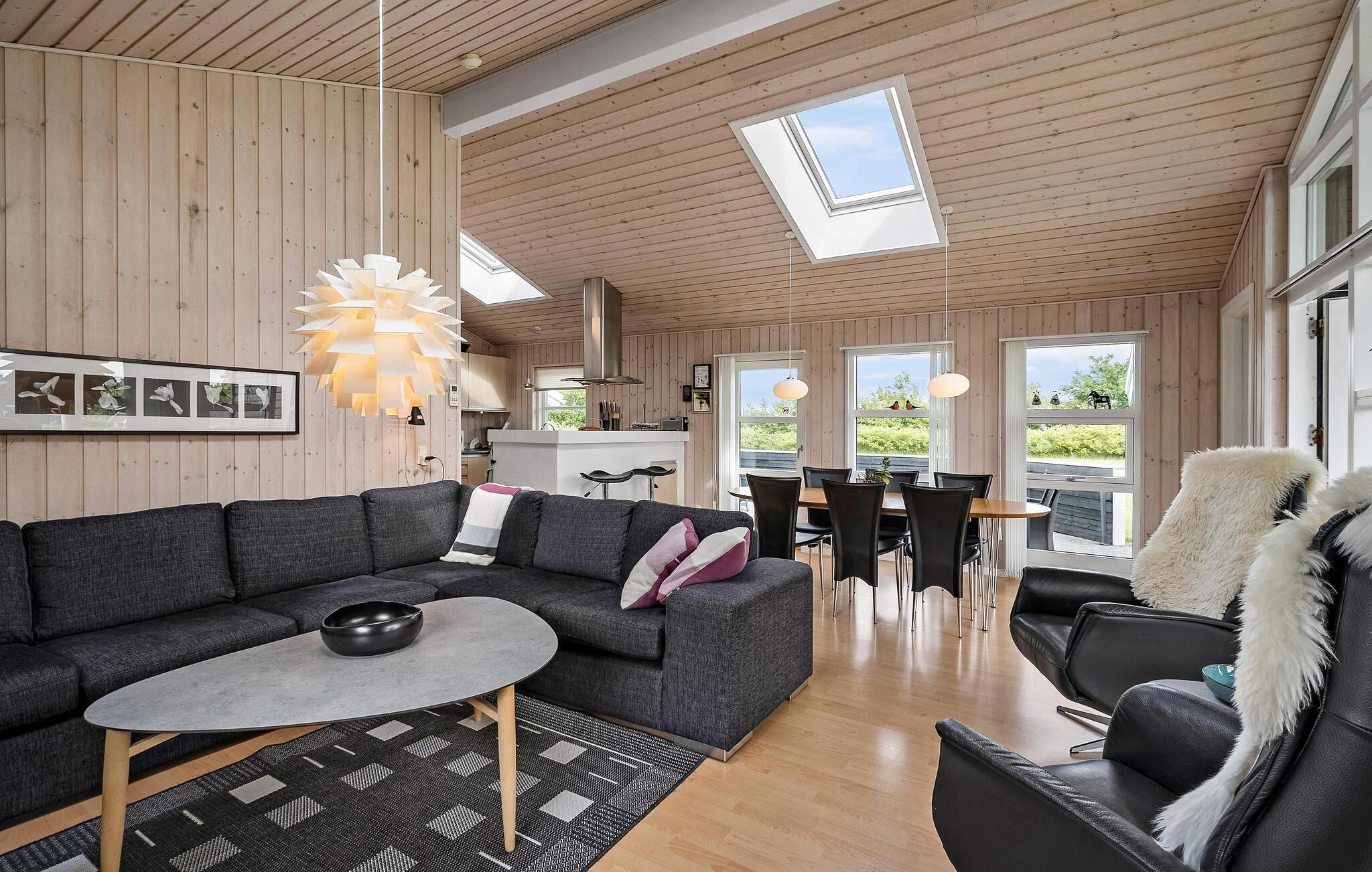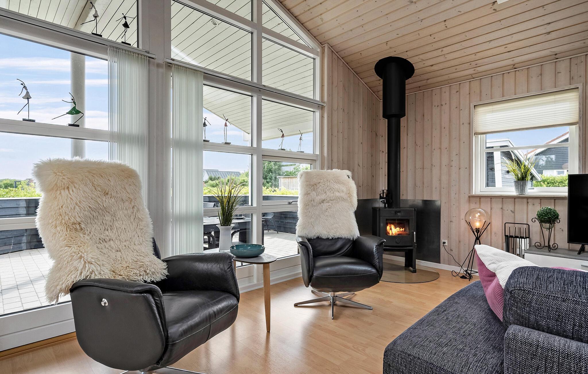 Ihr Ferienhaus bietet Ihnen ideale Bedingungen für einen erholsamen Familienurlaub mit Platz für die ganze Familie, einer gemütlichen Atmosphäre und vergnüglichen Annehmlichkeiten. Entspannen Sie im hellen Wohnbereich mit hohen Decken, großen Fenstern und einem behaglichen Kaminofen. Machen Sie es sich auf dem Sofa bequem, lesen Sie ein Buch oder schauen Sie gemeinsam einen Film. Bereiten Sie Ihre Mahlzeiten in der offenen, praktisch gestalteten Küche zu und trinken Sie einen Kaffee an der kleinen Frühstückstheke. Gönnen Sie sich eine wohltuende Auszeit im Whirlpool und lassen Sie den Alltag hinter sich.