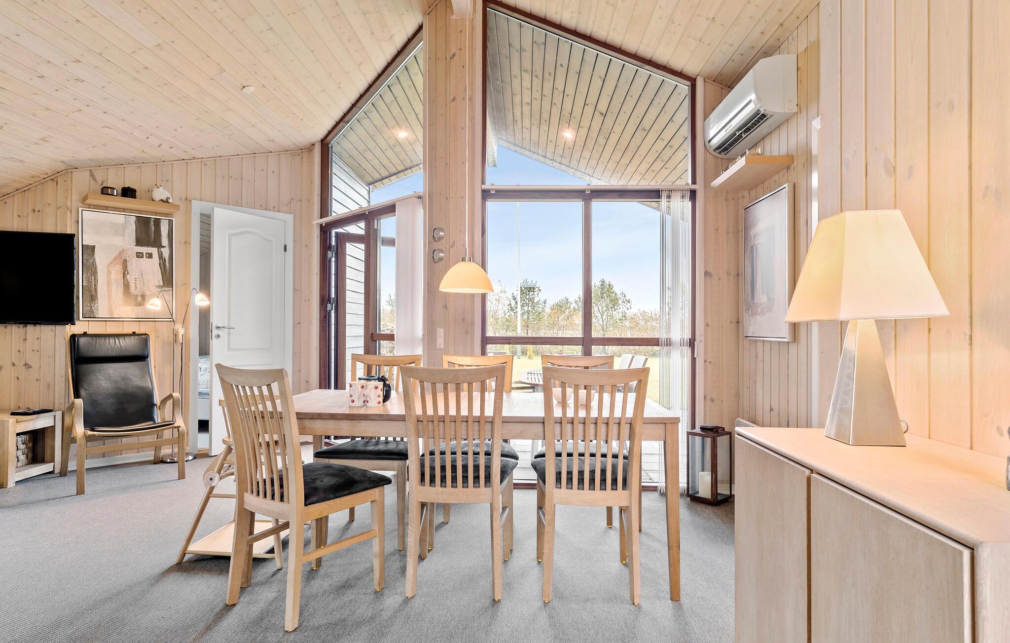 Dieses gemütliche Ferienhaus am Ende einer Sackgasse bietet Ihnen einen ruhigen Aufenthalt in der Nähe des Ringkøbing Fjord. Starten Sie den Tag mit einem Frühstück, das Sie in der praktisch eingerichteten Küche zubereiten, und versammeln Sie sich anschließend am einladenden Holzesstisch im Wohnbereich. Danach stellt sich die Frage, ob Sie direkt in Ihr finnisches Holzbad auf der Terrasse hüpfen oder zunächst ein wenig in der gemütlichen Sofaecke entspannen und ein lustiges Brettspiel spielen möchten. Der Kaminofen sorgt dabei für eine warme und gemütliche Atmosphäre.