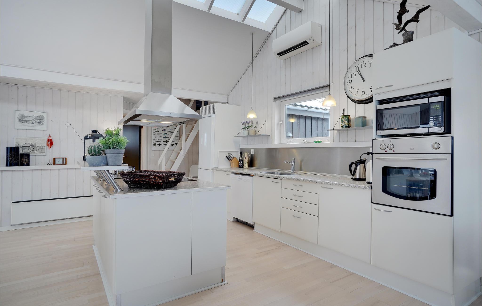 Strandnahes Ferienhaus in Skaven mit Sauna, Kamin und großer Terrasse für erholsame Tage.