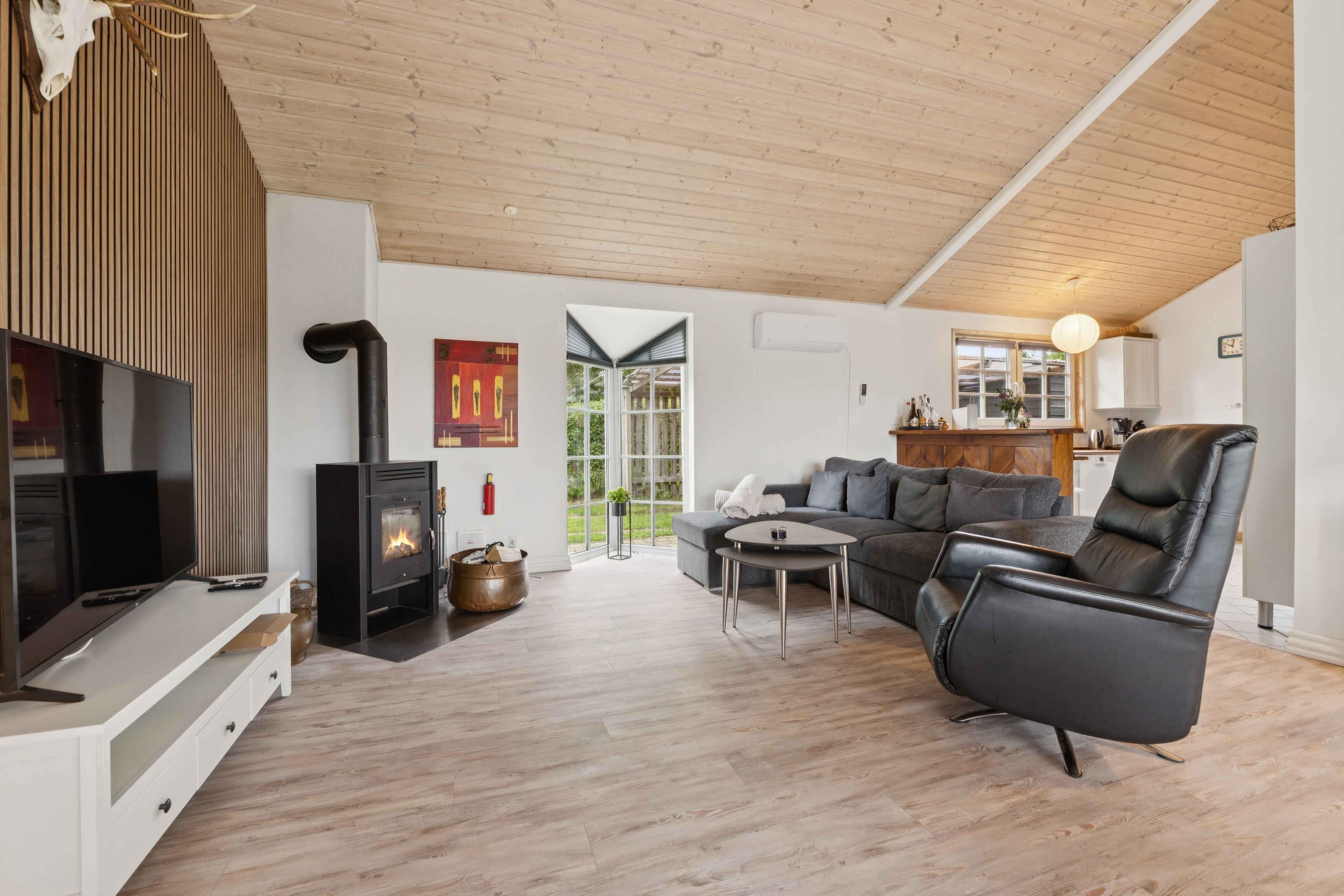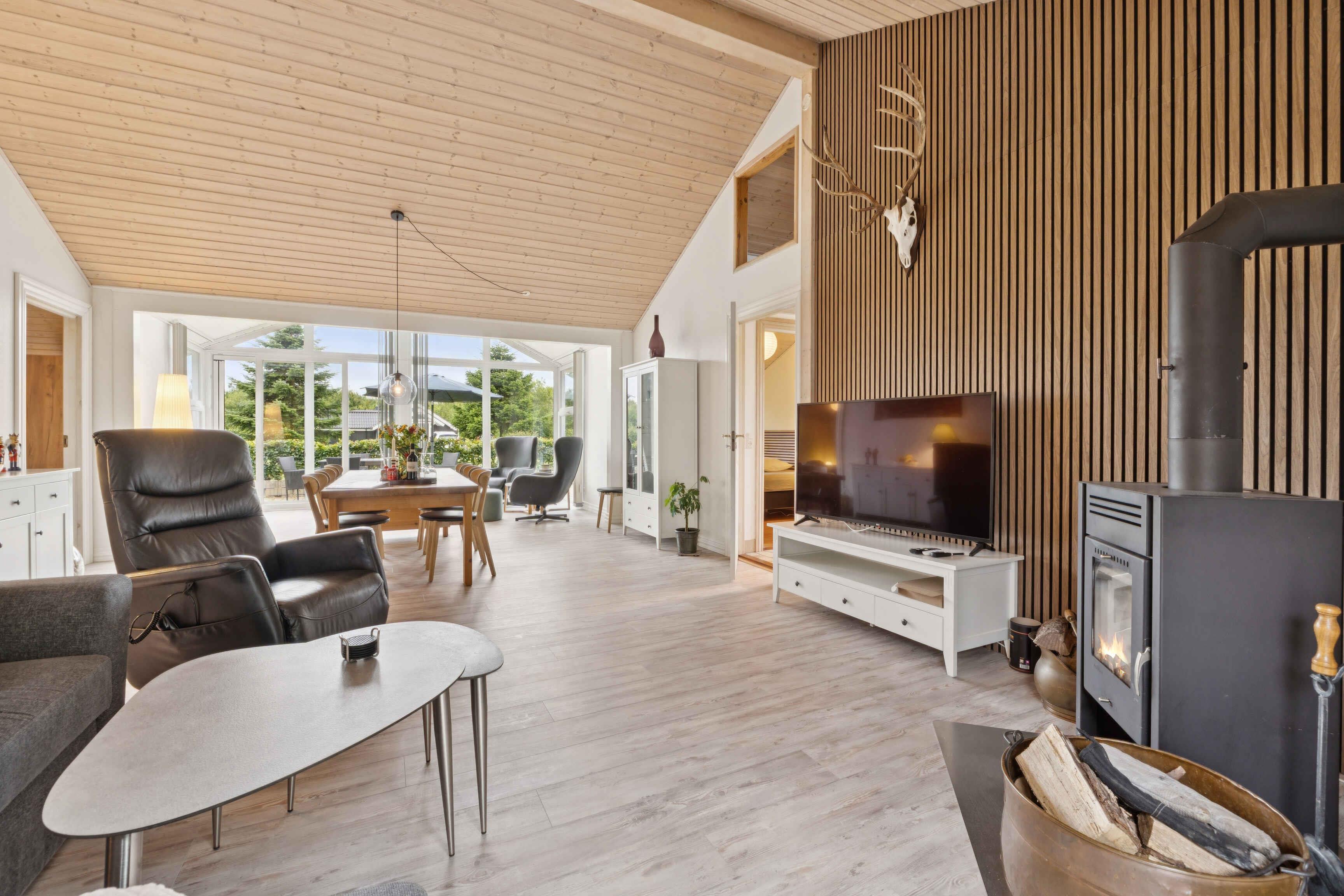 Einladendes Ferienhaus mit Whirlpool In der Nähe des Ringkøbing Fjords liegt dieses schöne Holzhaus, das Sie zu einem wunderbaren Urlaub willkommen heißt. Das Interieur ist hell, mit vielen Fenstern und schönen Holzelementen, die drinnen eine gemütliche Atmosphäre schaffen. Die Räume hinterlassen einen guten Eindruck und laden zu vielen entspannenden oder geselligen Stunden ein. Verbringen Sie gemütliche Abende mit Brettspielen und heizen Sie den Holzofen nach einem erfrischenden Spaziergang an. Auf der Terrasse stehen Gartenmöbel und ein Grill für lange Sommerabende bereit. Lassen Sie die Kinder und Ihre lieben Vierbeiner auf dem Grundstück spielen, während Sie draußen ein sommerliches Essen zubereiten. Der Ringkøbing Fjord bietet hervorragende Möglichkeiten zum Baden und für schöne Spaziergänge entlang des Wassers. Angler finden hier gute Bedingungen oder können einen Ausflug zur beliebten Skjern Å machen. In Stauning gibt es Geschäfte, Restaurants und eine Destillerie. Das nahegelegene Ringkøbing lädt mit seinen gemütlichen Gassen, Cafés, Restaurants und einer guten Auswahl an Geschäften zu einem Besuch ein. Auch ein Ausflug zur rauschenden, wunderschönen Nordsee lohnt sich. Freuen Sie sich auf einen herrlichen Urlaub in Wassernähe!