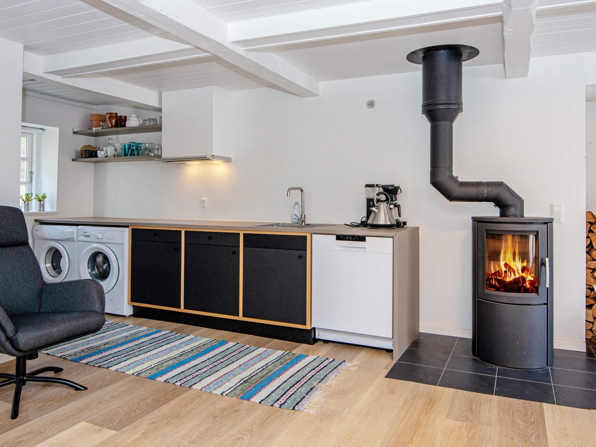Küche: Holzofen, Kühl-Gefrier-Kombi, Mikrow., induktionskomfur, Kaffeem., Spülm., Waschm, Trockner, WC, Waschb., Dusche
