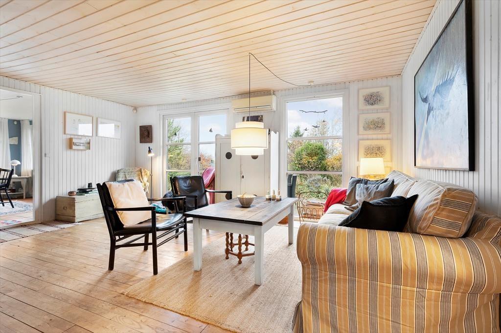 Gemütliches Ferienhaus in Fjellerup Strand mit Kamin, Garten und moderner Ausstattung für erholsame Tage.