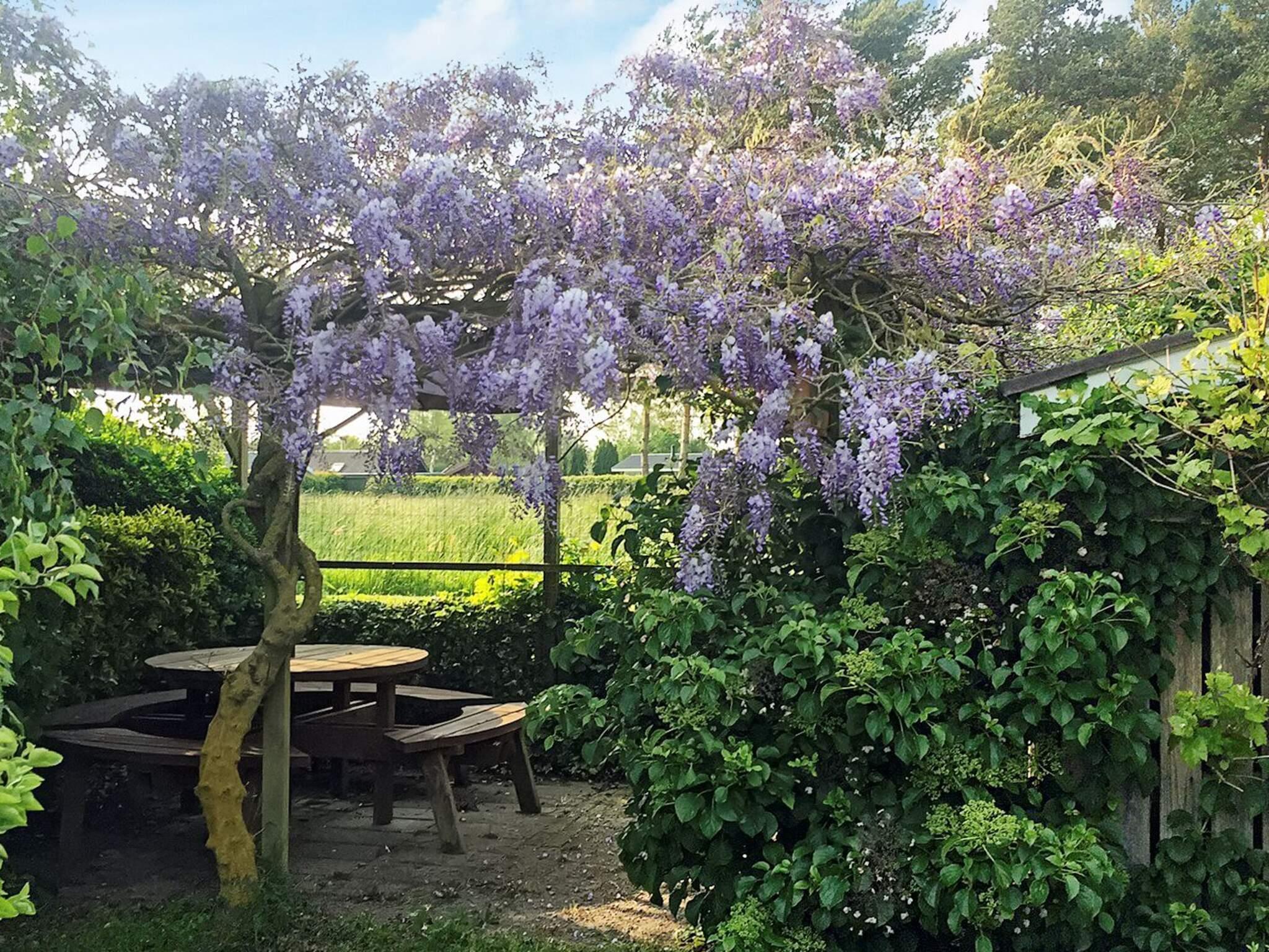 Im Außenbereich findet man eine 60 m² große, offene Terrassenfläche sowie eine 15 m² große, überdachte Terrasse, auf der Sie von den bequemen Lounge-Möbeln aus die umliegende Natur genießen können. Zudem sind weitere Sitzgelegenheiten und einige Liegestühle vorhanden. Das gesamte Gartengrundstück ist eingezäunt, ideal für Kleinkinder oder den Vierbeiner der Familie. Der Garten präsentiert sich im Sommer blühend und schön. Für ein nächtliches Abenteuer im Freien stehen auf dem Grundstück auch ein Shelter und eine Feuerstelle bereit.
