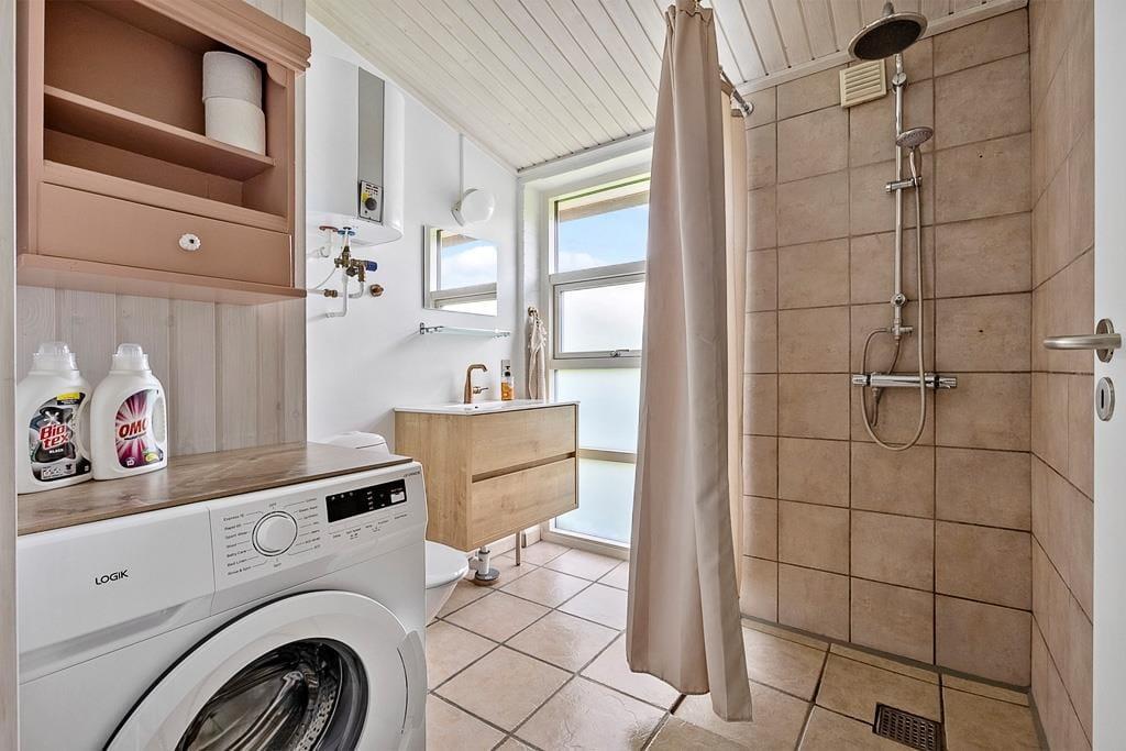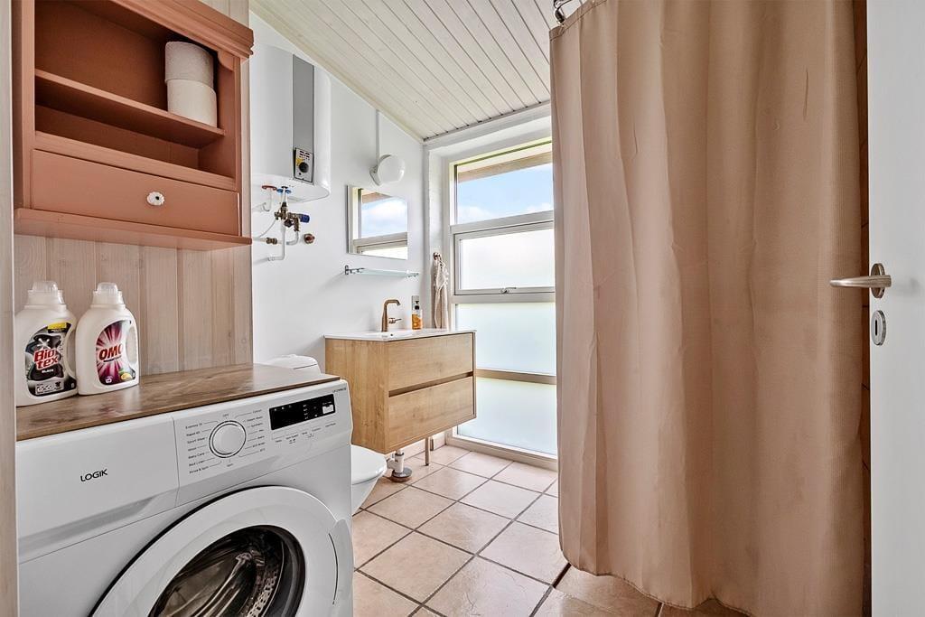 Dieses interessante Ferienhaus beinhaltet eine offen mit dem Wohn- und Essbereich kombinierte Küche. Im Wohnraum sorgt eine energiesparende Wärmepumpe für angenehme Temperaturen. Ein Badezimmer, ein Schlafraum mit zwei Einzelbetten und ein Schlafraum mit einem Etagenbett sind vorhanden. Beide Schlafräume bestechen mit einem eigenen Zugang zum Garten. Von der Terrasse gelangen Sie in das Nebengebäude, in dem Ihnen ein weiterer Schlafraum mit ein Dobbelbettbett und ein gesonderter Raum mit einer Sauna zur Verfügung stehen.