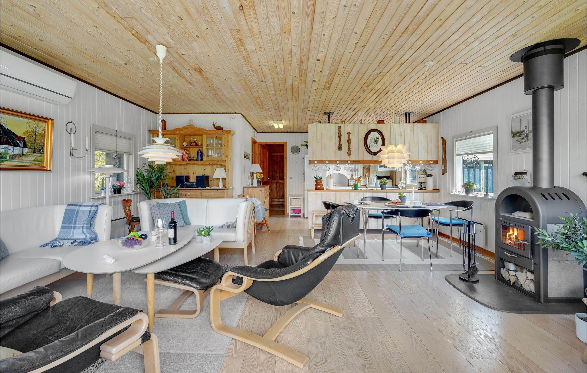 Das Herzstück des Hauses ist das gemütliche Wohnzimmer mit Kaminofen, das direkt mit der offenen Küche verbunden ist. An kühlen Tagen können Sie sich also vorm Kamin oder in der Sauna des Hauses aufwärmen und entspannen.