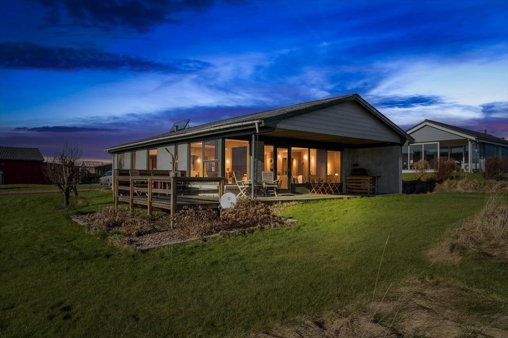 Außerhalb des Ferienhauses findest du eine schöne Terrasse, auf der du den ganzen Tag die Sonne genießen kannst. Mit Blick auf den Fjord kannst du dich in den Sonnenstrahlen entspannen oder ein kühles Getränk unter dem Sonnenschirm genießen, während du die malerische Umgebung betrachtest. Wenn es Zeit ist, das Abendessen zuzubereiten, kann der Grill angezündet werden, und ein gemütliches Abendessen mit Blick auf das Wasser ist schnell vorbereitet. Die Umgebung des Hauses lädt zur Entspannung und zum Zusammensein ein, und hier wirst du wirklich das Urlaubsgefühl spüren.