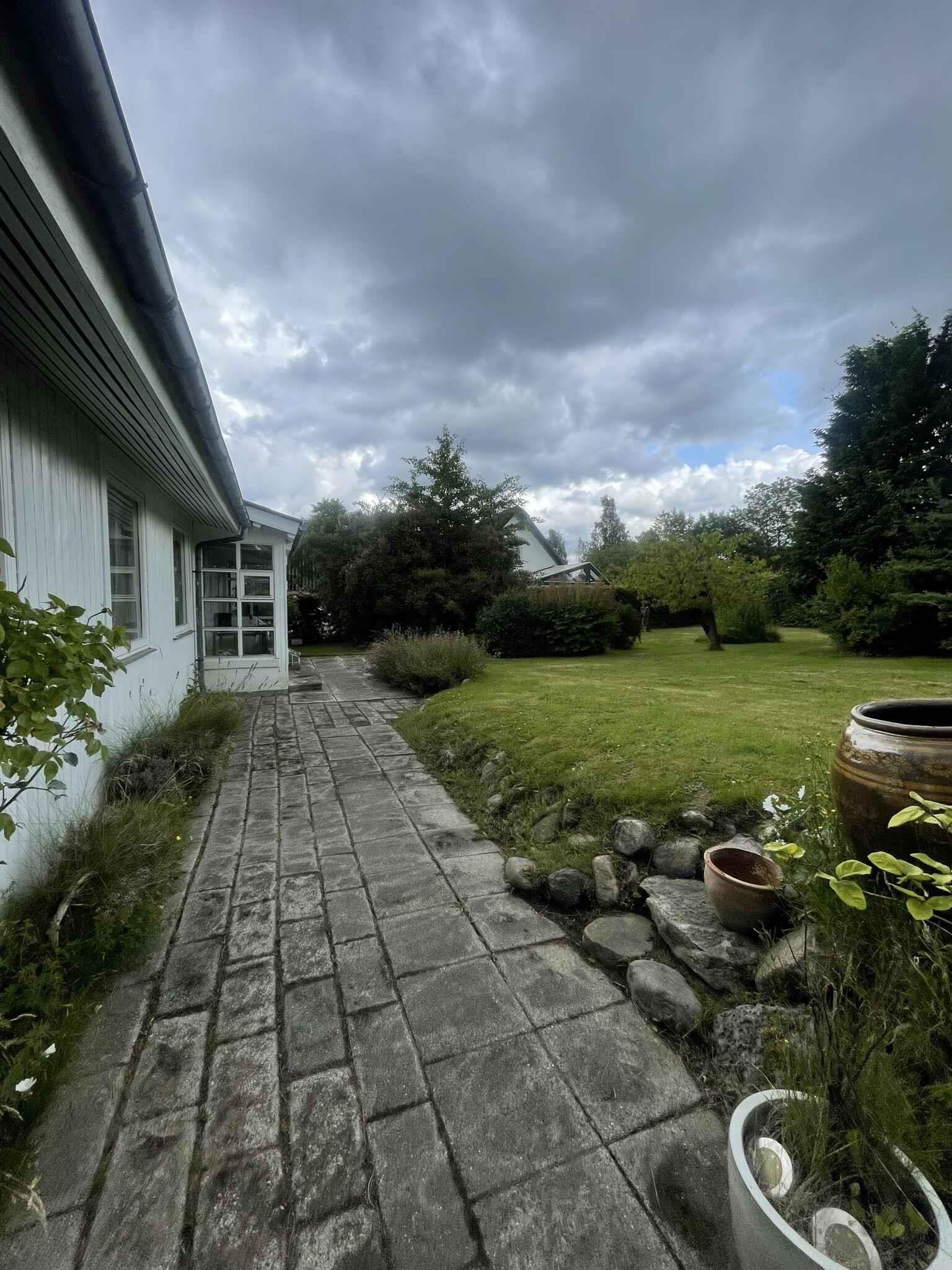 140 m² Ferienhaus mit 4 Schlafzimmern und 6 Betten, 2 Wohnzimmern mit Kaminofen, großem Garten und überdachter Terrasse. In der Nähe des Buresø mit Bademöglichkeiten, Wald und Wegen – ideal für einen entspannten Familienurlaub.