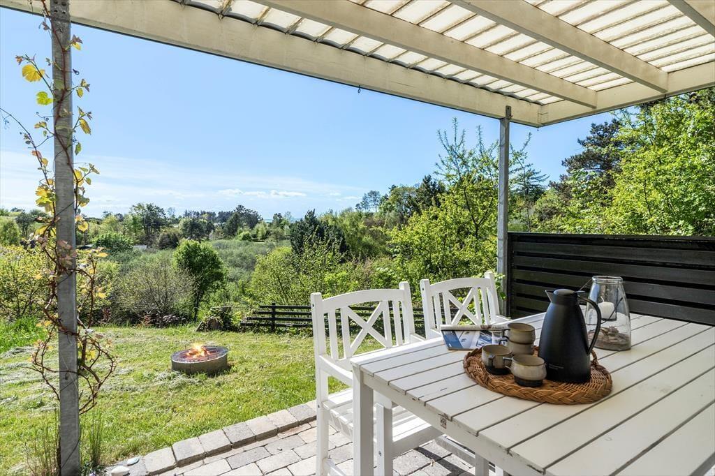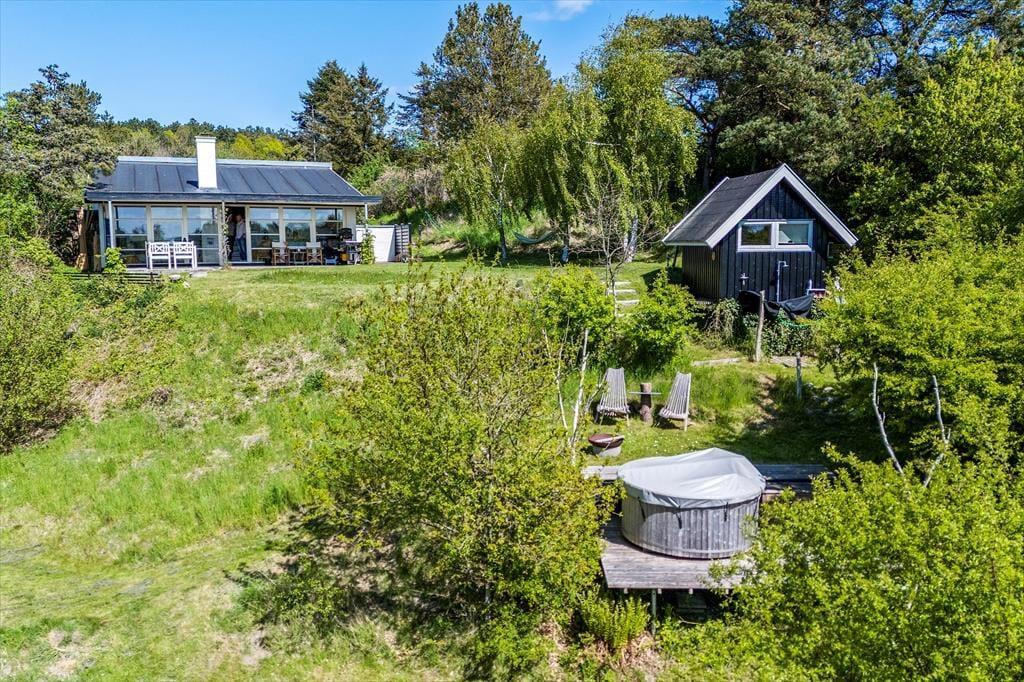 Das Ferienhaus ruht auf einem großen, ungestörten Grundstück mit einer fantastischen Aussicht. Vom Wohnraum aus gelangen Sie auf die große, teilweise überdachte Terrasse mit "Meerblick". Diese besticht mit wunderbar abgeschirmten Sonneneckchen und guten Gartenmöbeln. Auf dieser Terrasse können Sie sich in aller Ruhe niederlassen, ein gutes Buch lesen oder auch in geselliger Runde beisammensitzen. Im Außenbereich treffen Sie außerdem auch auf eine kleine Außenküche, in der Sie frisch gefangenen Fisch reinigen und anschließend auf dem Gasgrill zubereiten können. Der Garten ist angenehm groß und umzäunt, sodass selbst Ihr Hund hier nach Herzenslust umhertollen kann. Ein Teil des Gartens ist so eben, dass Sie hier auch gut Fußball und andere Outdoorspiele spielen können. Zum Ferienhaus gehört eine Schwedische Badetonne, die Ihnen zur freien Verfügung steht.