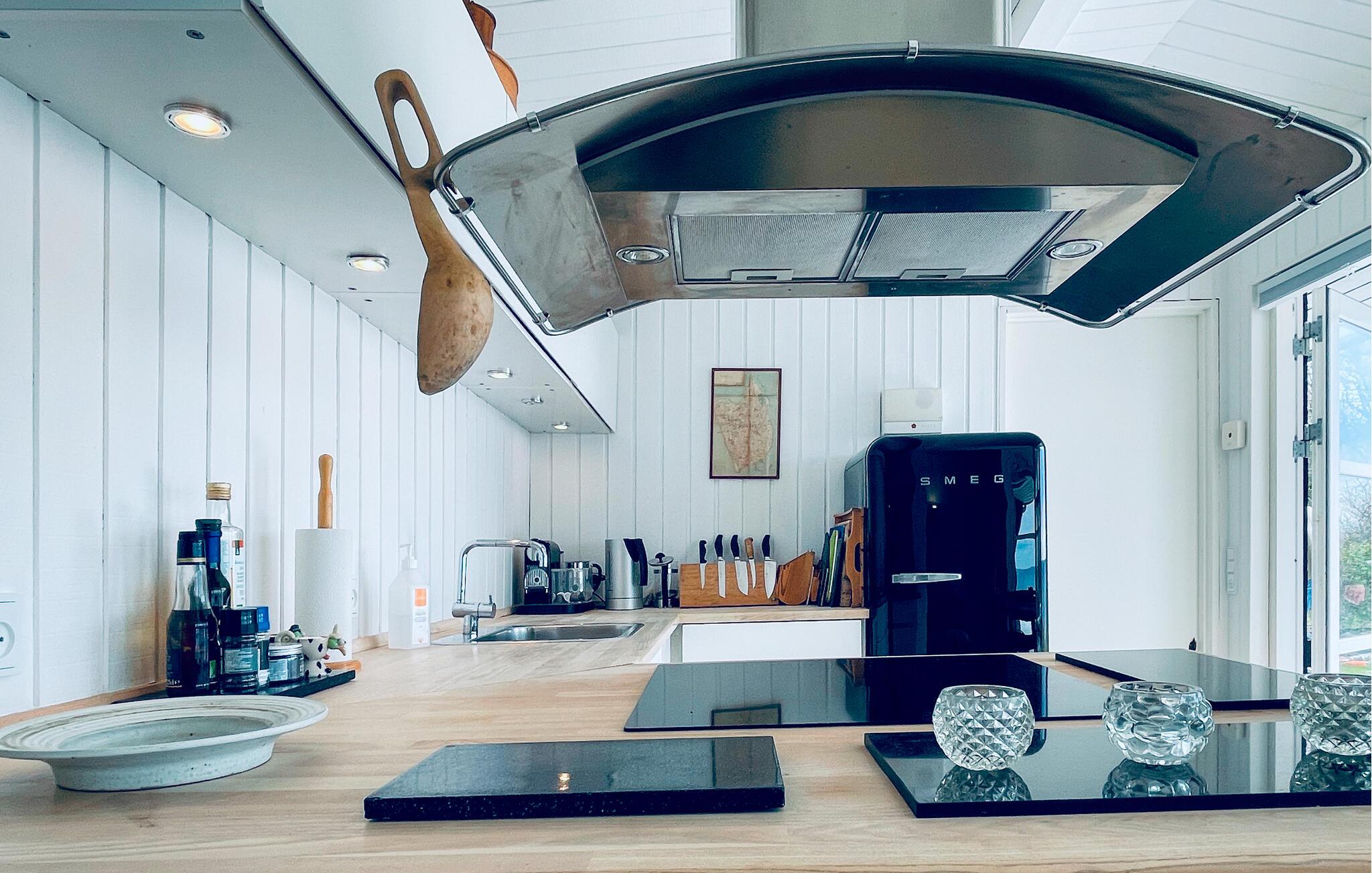 Tauchen Sie ein in das stilvolle Ambiente des modernen Innenbereichs, der Sie mit einer voll ausgestatteten Küche, einem einladenden Essbereich und einem gemütlichen Wohnzimmer erwartet. Genießen Sie entspannte Stunden vor dem Kamin, lassen Sie sich von der großen Fensterfront mit Blick auf das Meer inspirieren oder verbringen Sie gesellige Abende mit Familie und Freunden.