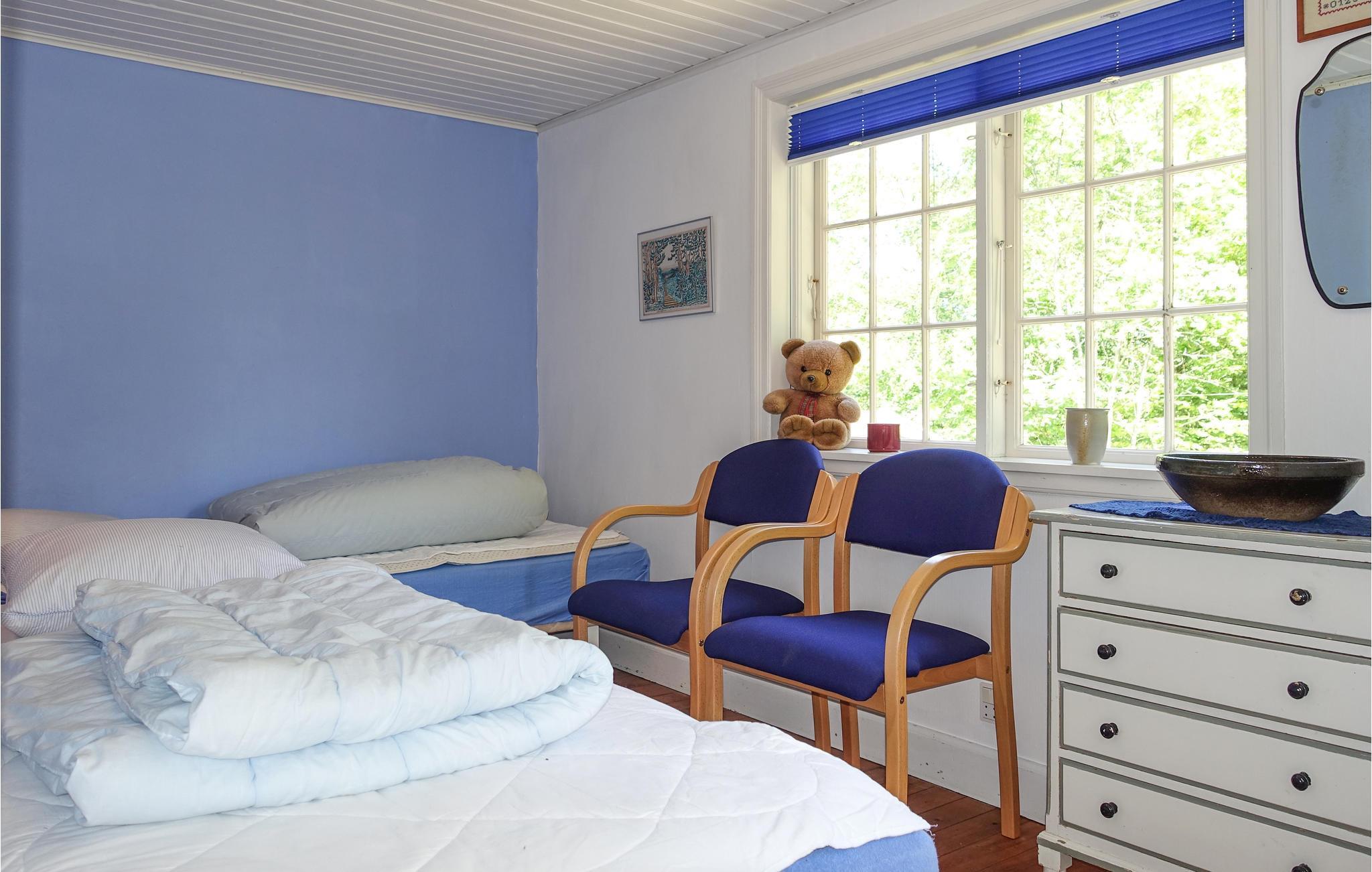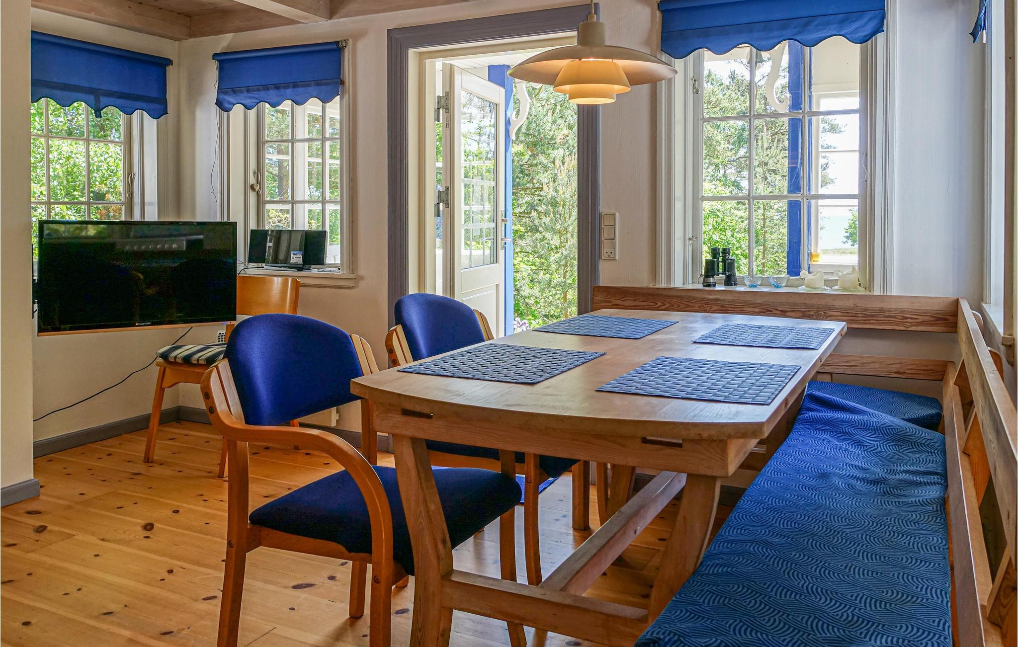 Freuen Sie sich auf dieses wunderschöne, sehr charmante Ferienhaus, das sich mit seiner sommerlichen blauen Farbe, den altmodischen Gitterfenstern und einer gemütlichen Veranda, auf der Sie Ihren Morgenkaffee genießen können. Ob das Wetter zu sonnigen Tagen im Garten oder zum gemütlichen Enstpannen drinnen einlädt, werden Sie hier traumhafte Urlaubstage erleben. Im Wohnzimmer können Sie sich an kühlen Tagen am Kaminofen wärmen. Kochen Sie in der Küche ruhig und ohne Stress, während die Kinder sich im Wohnzimmer entspannen. Neben zwei guten Schlafzimmern gibt es einen Dachboden für zwei Personen, also Platz für insgesamt sechs Personen.