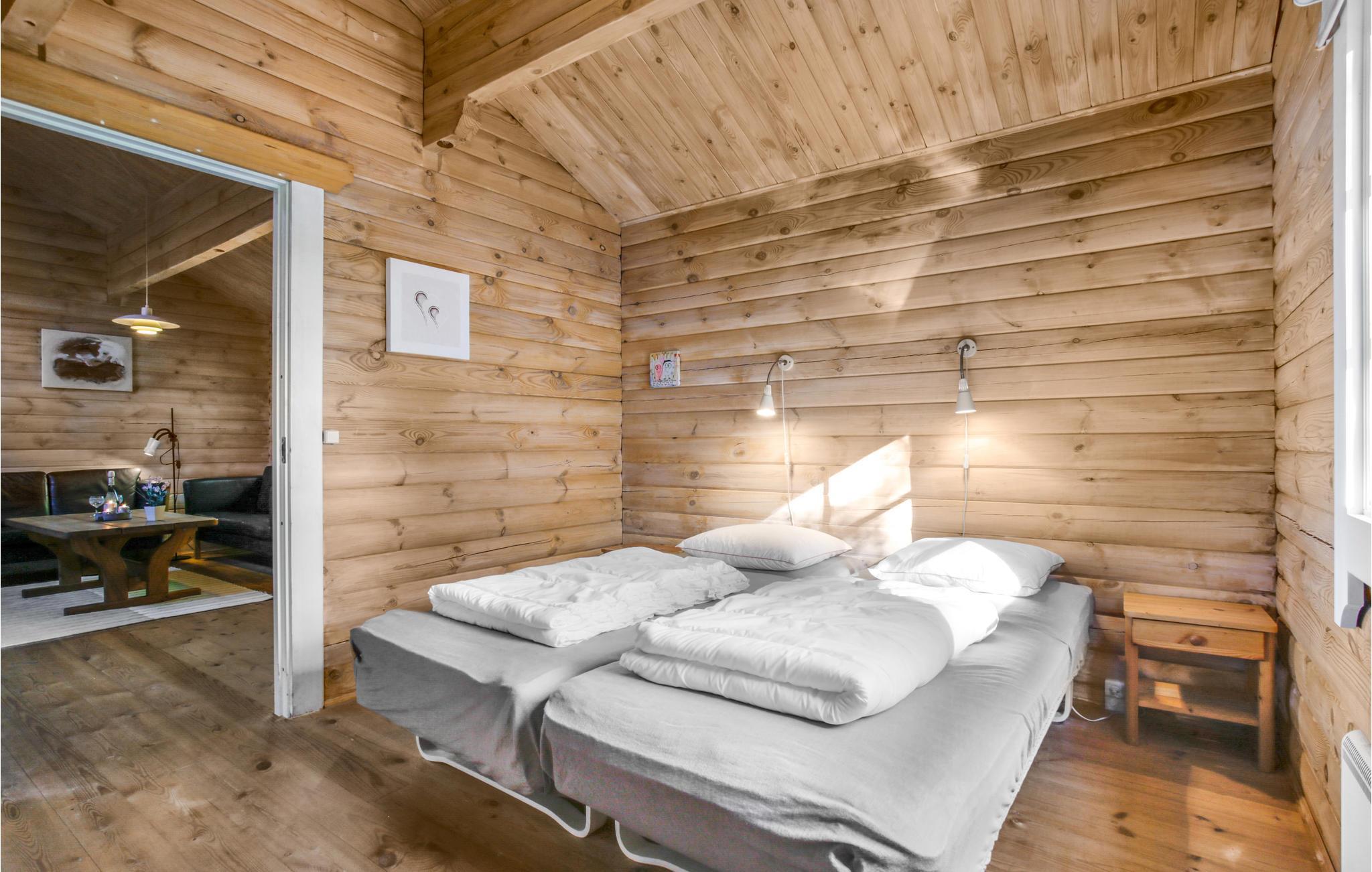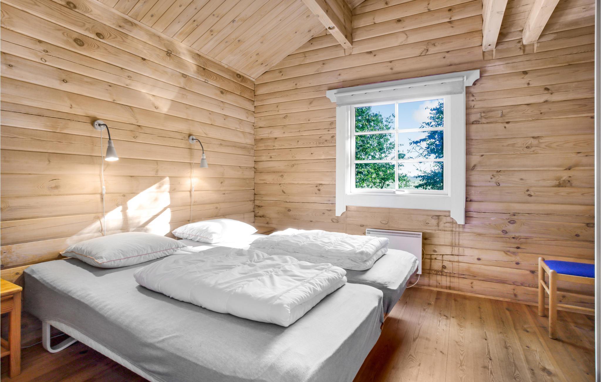 Schönes Blockhaus mit gemütlichem Ambiente und viel Komfort. Die Einrichtung ist hell und freundlich. In der gut ausgestatteten Küche können Sie bequem Ihre Mahlzeiten zubereiten. Das rustikale Ferienhaus verfügt u.a. über zwei offene Schlafböden - auf einem sind zwei Betten vorhanden, auf dem anderen können die Kinder spielen. Ein großes Luxusbad mit Bodenheizung und Whirlpool macht den Urlaub noch komfortabler. Das Haus mit einer großen Holzterrasse liegt auf einem offenen Naturgrundstück mit Blick auf Felder. Auf dem Grundstück fließt ein kleiner Bach. Unweit von Hasle Lystskov, Radwegen und Badestrand. Ganzjahreshaus.