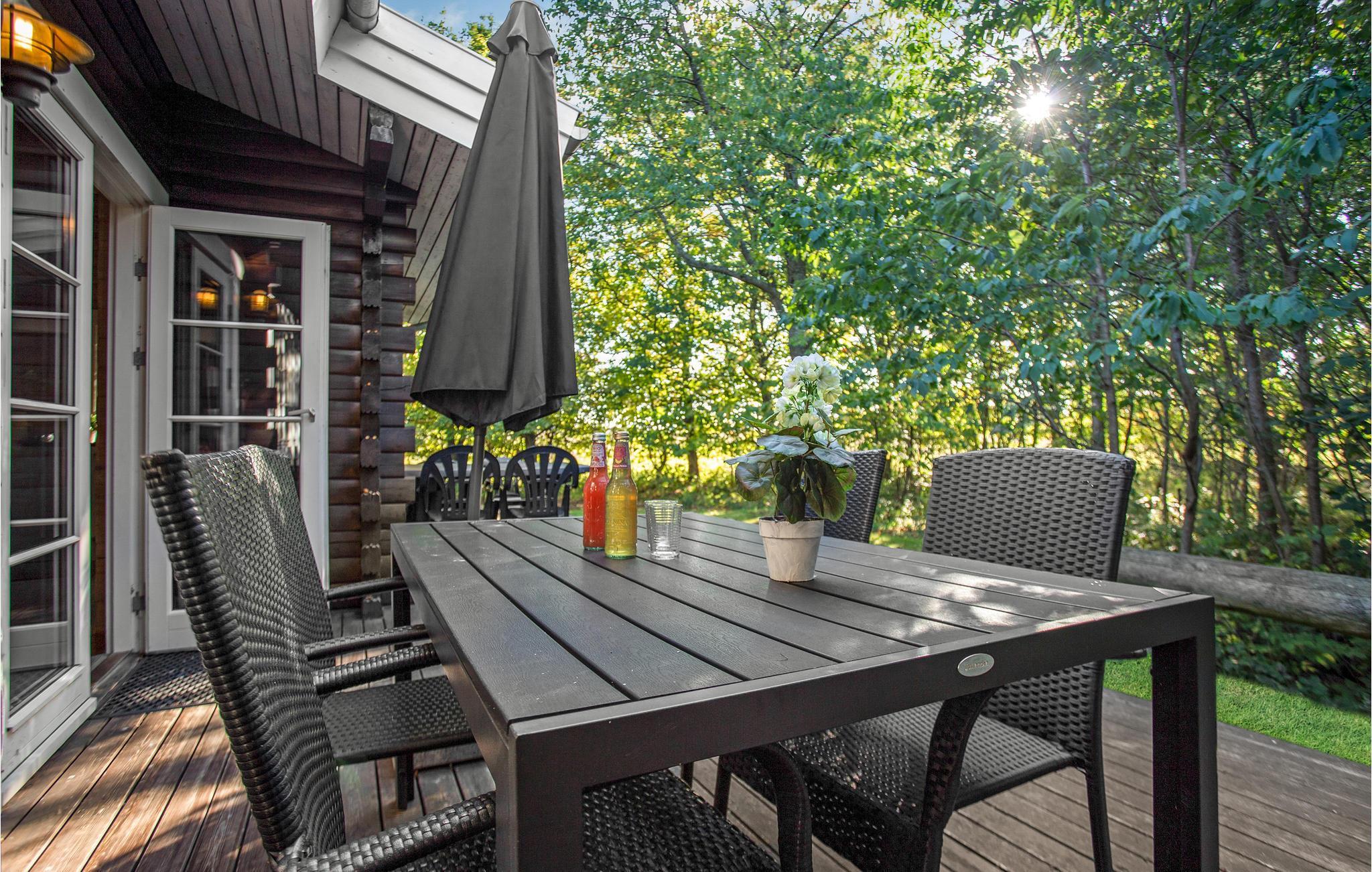 Gemütliches Blockhaus mit Whirlpool, Kaminofen und großer Terrasse auf Naturgrundstück bei Rønne.