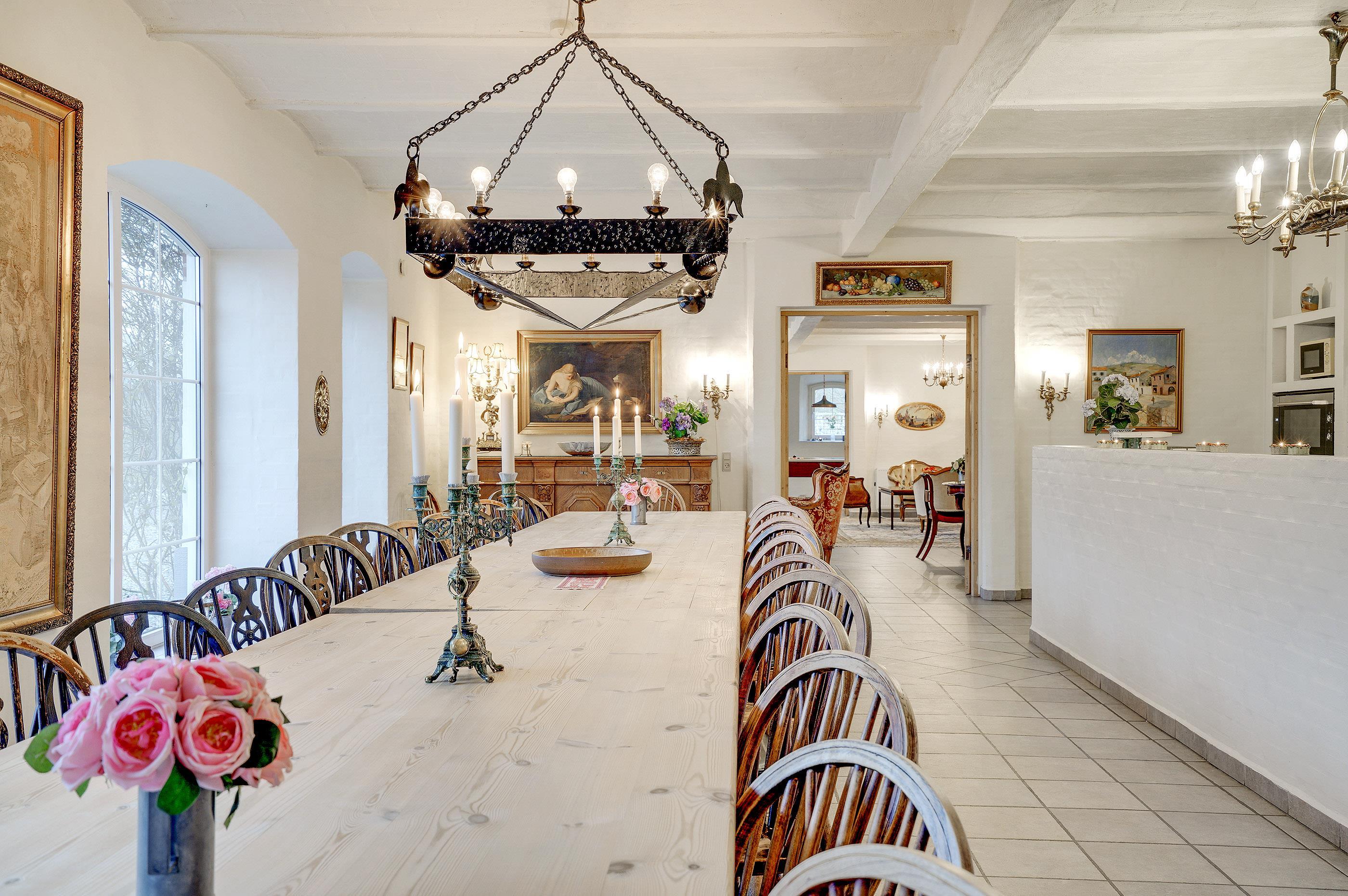 Das Anwesen Hesthave bei Spøttrup kann auf die Zeit rund um 1750 zurückdatiert werden. Zu dieser Zeit zählte das Herrenhaus zu den größten ländlichen Gütern der gesamten Umgebung. Hesthave gehörte zur Burg Spøttrup und diente hauptsächlich der Pferdezucht, wodurch auch der Name "Hesthauge" resultierte. Hesthave wurde in der Vergangenheit einer behutsamen Renovierung unterzogen, bei der, im Hinblick auf die Geschichte, in jedem Raum das Hauptaugenmerk darauf lag, den ursprünglichen Charme und Charakter zu bewahren. Die 850 m² umfassende Wohnfläche wurde mit liebevoller Hand renoviert und erfüllt nunmehr sämtliche Erwartungen in Bezug auf die Funktionalität. Hesthave Herregård befindet sich in Verbindung zu einer schönen Parkanlage mit zwei kleinen Seen. Die 41.000 m2 große, ansprechende Parkanlage bietet Ihnen beste Möglichkeiten, Ihren Aufenthalt zu einem wunderbar erholsamen Erlebnis zu machen.