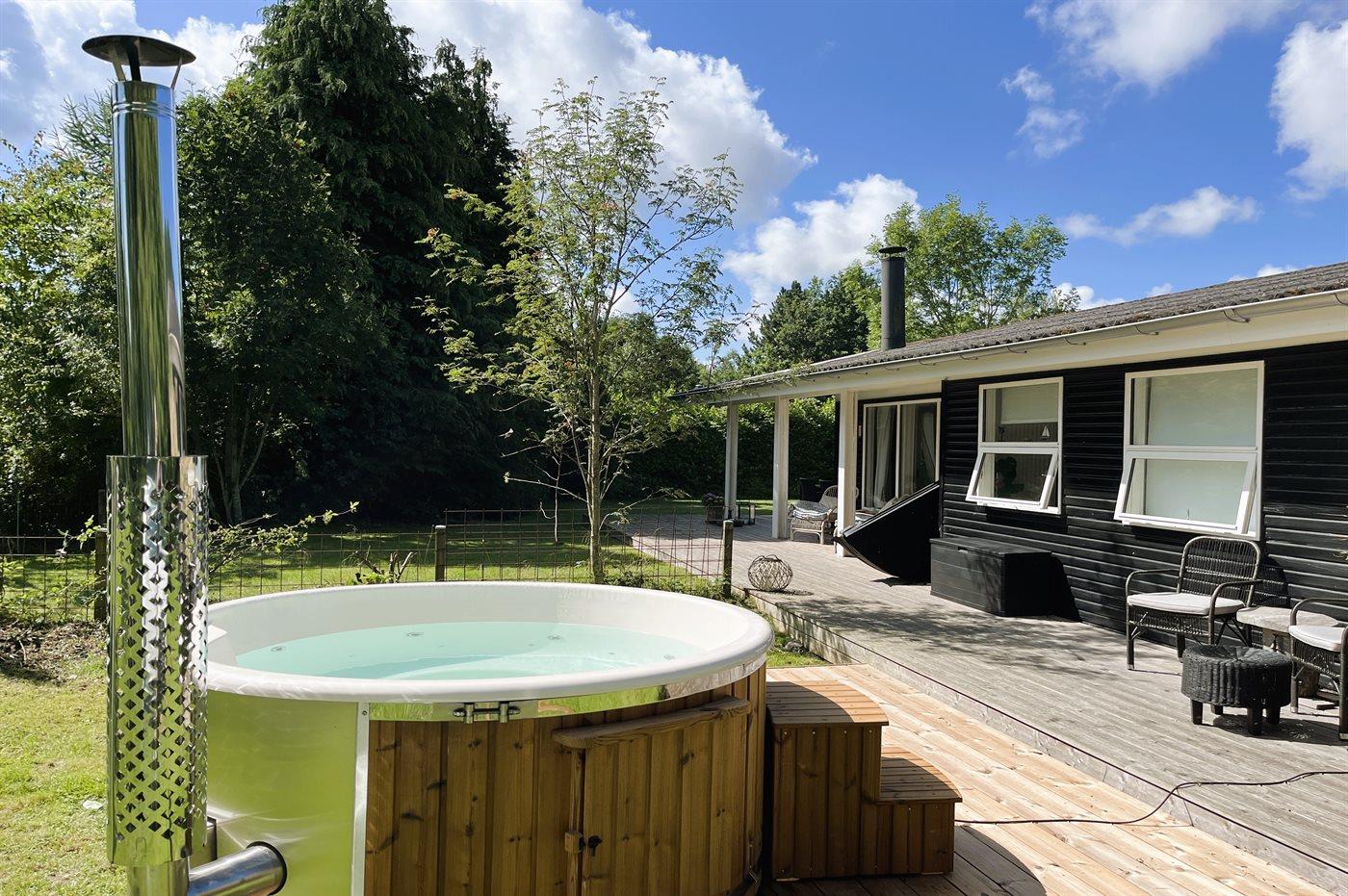 Modernisiertes Ferienhaus in Spodsbjerg mit Seeblick, Whirlpool und großzügiger Terrasse für erholsame Urlaubstage.