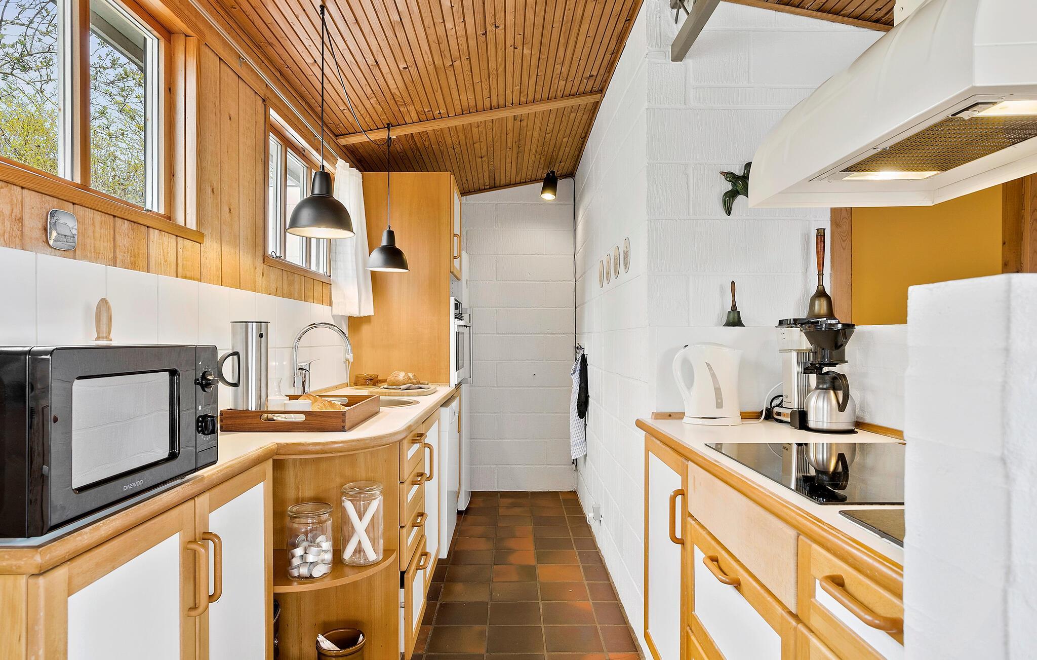 Ihr kompaktes Ferienhaus bietet Ihnen alles, was Sie für einen gelungenen Urlaub benötigen. Bereiten Sie in der praktisch eingerichteten Küche ein schönes Familienfrühstück zu und genießen Sie bei den gemeinsamen Mahlzeiten am Esstisch die Aussicht auf das Meer. Der einladende Wohnbereich mit der bequemen Sitzecke ist ideal für Familienspiele oder entspannte Abendstunden. Der Kaminofen sorgt währenddessen für wohlige Wärme und Gemütlichkeit. Draußen können Sie auf der Terrasse die Ruhe der Natur genießen.
