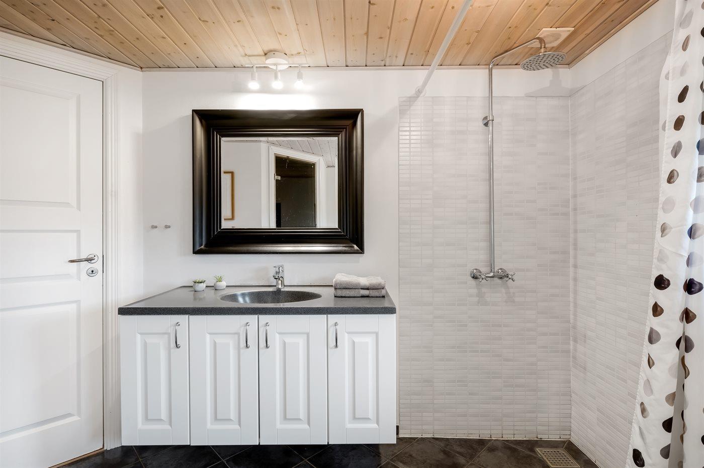 Die Ferienunterkunft liegt auf einem 1050 m² großen Naturgrundstück. Die Entfernung zum Fjord beträgt 300 m. Die nächste Einkaufsmöglichkeit liegt 4000 m entfernt. Es steht ein 40 m² Terrassenareal zur Verfügung. Außerdem gibt es 15 m² überdachte Terrasse. Geräteraum. Parkplatz auf dem Grundstück.
