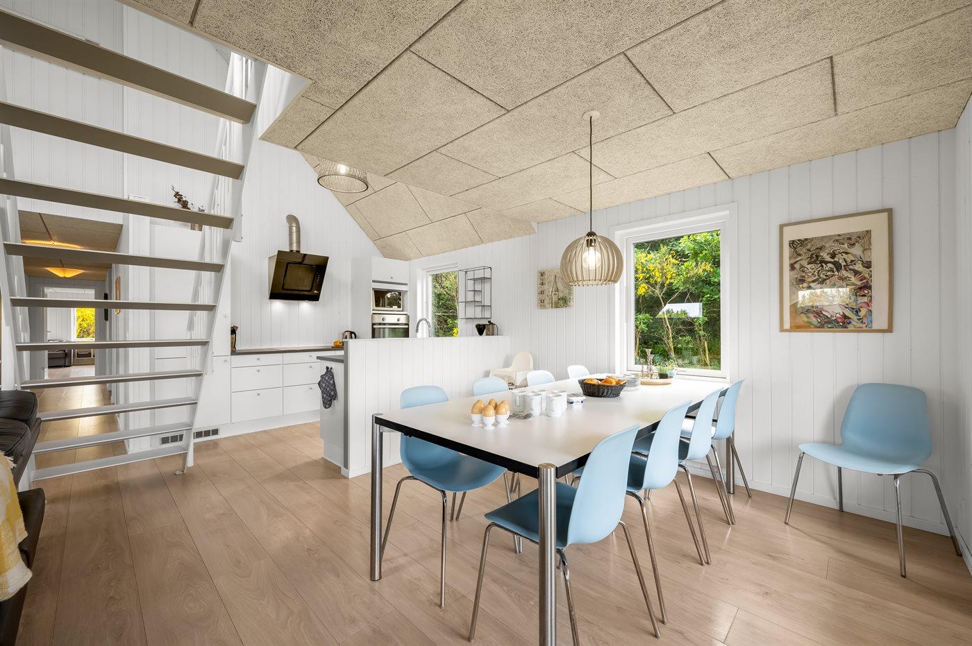 Ein gut gelegenes Ferienhaus in ruhiger und naturschöner Umgebung, ganz in der Nähe vom Ringkøbing Fjords Das Haus ist geräumig und vom offenen Vorraum im Obergeschoss aus hast du Zugang zu einem großen Balkon. Von hier kannst du den Ausblick auf das Wasser genießen.