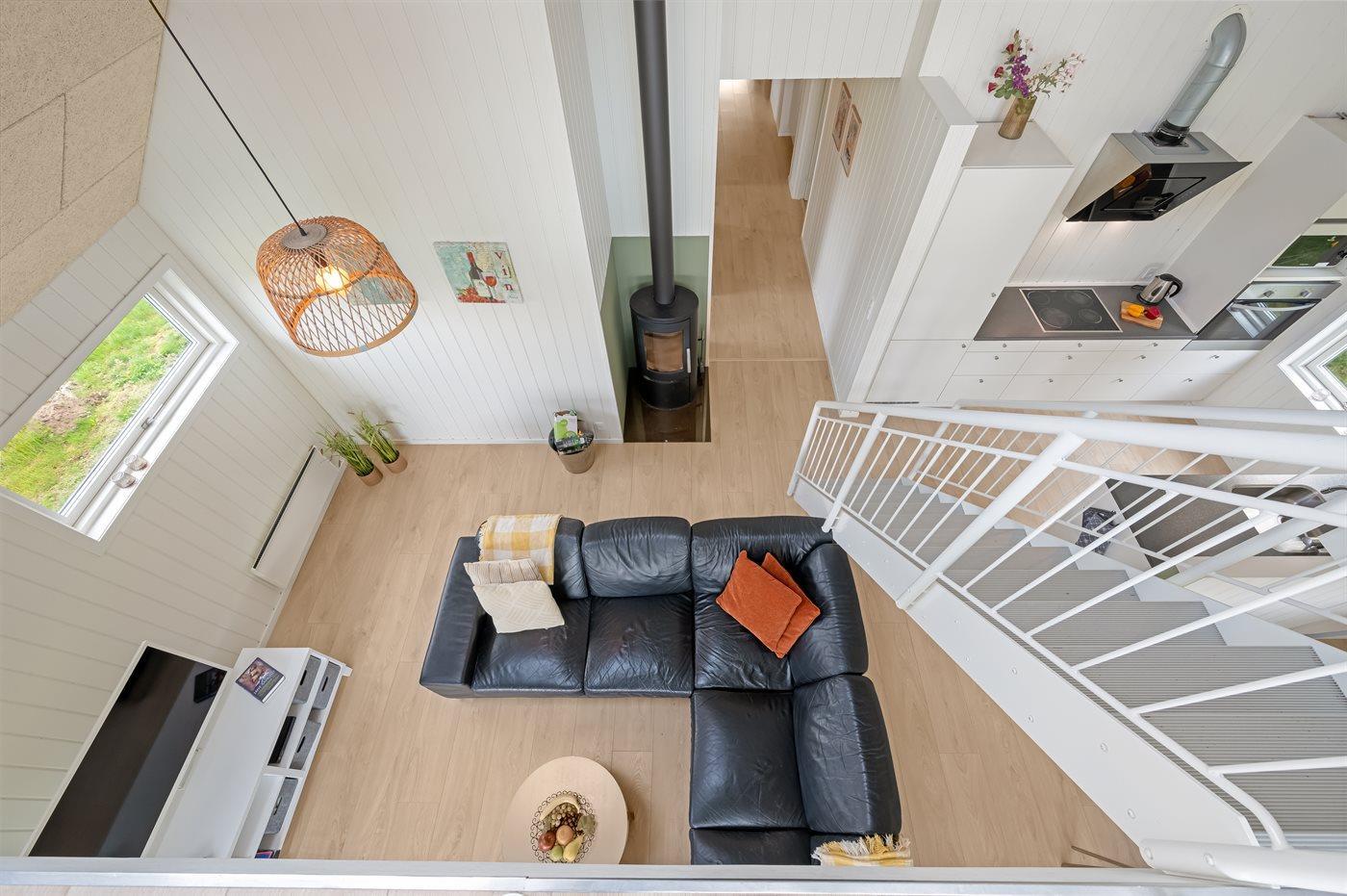 Die Ferienunterkunft liegt auf einem 1028 m² großen Naturgrundstück. Die Entfernung zum Meer beträgt 27000 m. Die Entfernung zum Fjord beträgt 200 m. Die nächste Einkaufsmöglichkeit liegt 6000 m entfernt. In einem Abstand von 10000 m gibt es einen Golfplatz. Es steht ein offenes Terrassenareal zur Verfügung. Außerdem gibt es überdachte Terrasse.Balkon im Obergeschoss. Geräteraum. Schaukel. Sandkasten. Rutsche. Die Entfernung zu einem Spielplatz beträgt 150 m.Lagerfeuerstelle. Es steht ein Grill zur Verfügung. Parkplatz auf dem Grundstück.
