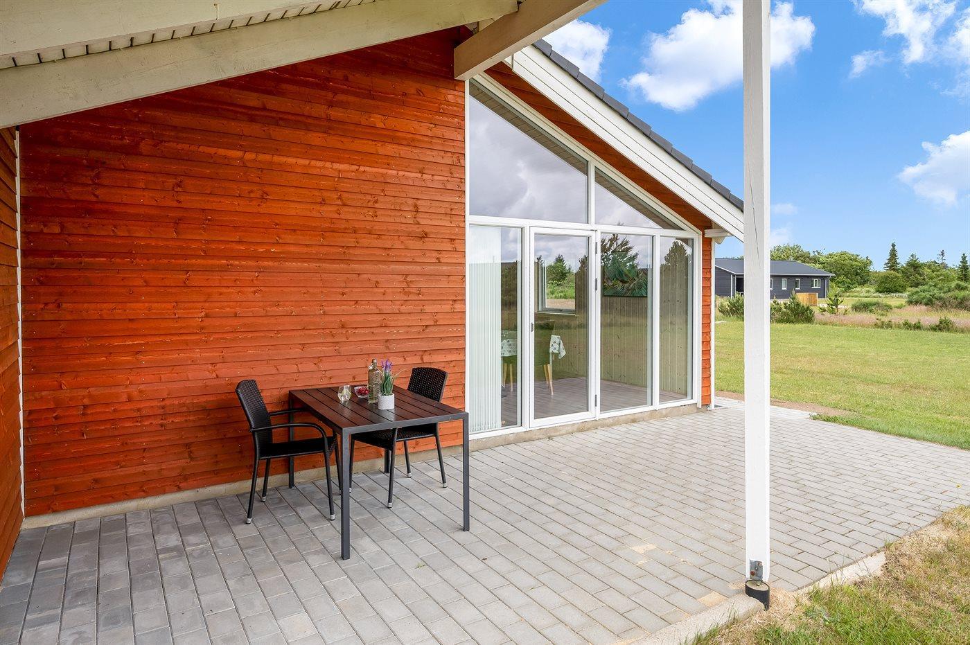 Die Ferienunterkunft liegt auf einem 1057 m² großen Naturgrundstück. Die Entfernung zum Fjord beträgt 500 m. Die nächste Einkaufsmöglichkeit liegt 5000 m entfernt. In einem Abstand von 10000 m gibt es einen Golfplatz. Es steht ein 18 m² Terrassenareal zur Verfügung. Außerdem gibt es 9 m² überdachte Terrasse. Geräteraum. Sandkasten. Parkplatz auf dem Grundstück.