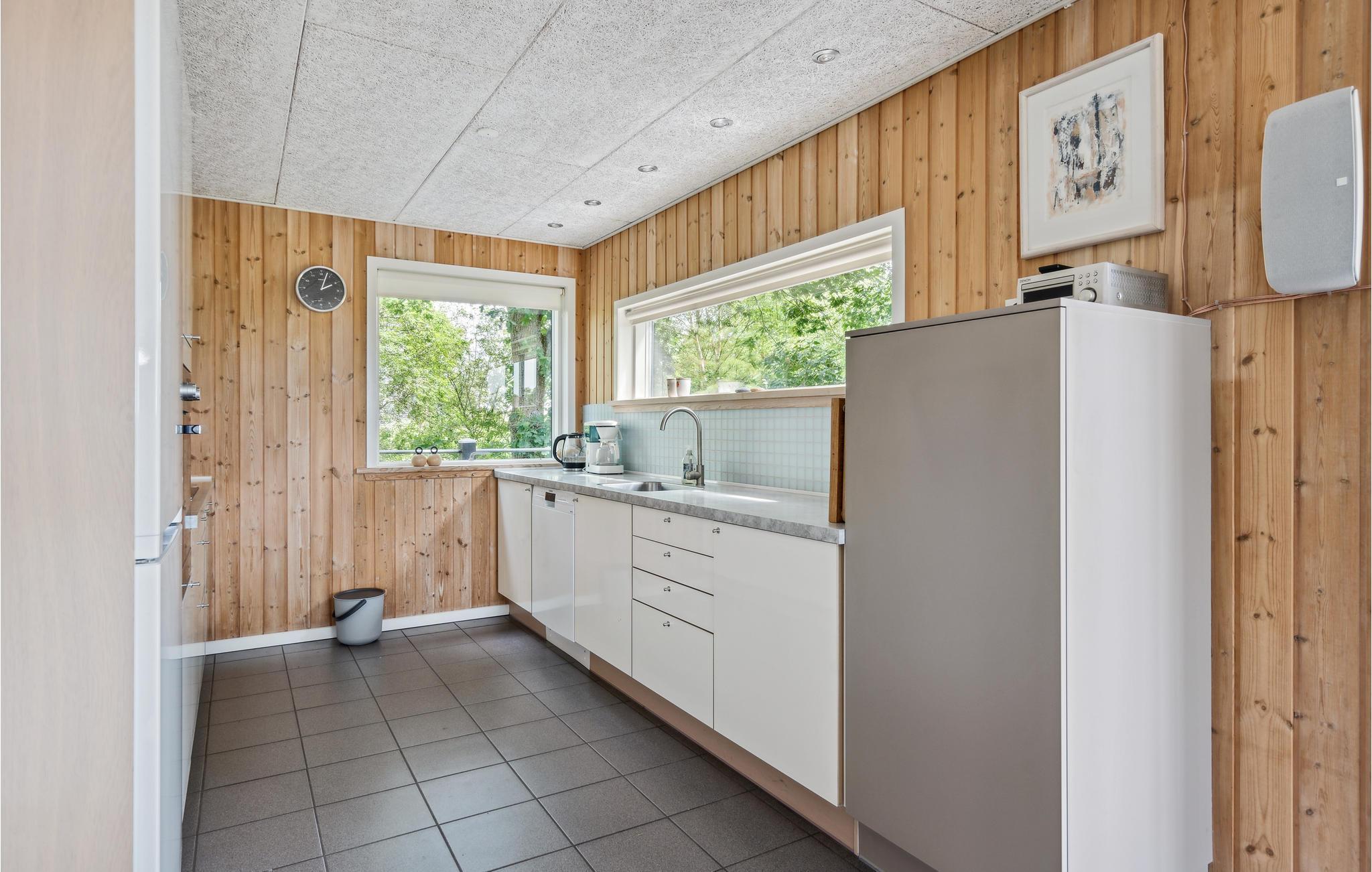 Exklusives und architektonisch spannendes Luxushaus auf zwei Etagen. Im offenen Erdgeschoss ist ein geräumiger Essplatz und die funktionelle Küchenabteilung vorhanden. Die großen Fensterpartien vermitteln das Gefühl mitten in der Natur zu sein. Im ersten Stock befindet sich eine schöne, helle Wohnstube von der Sie auf den Balkon gelangen können. Hier können Sie die Aussicht über das leicht hügelige Grundstück genießen. Auf dem Grundstück befindet sich ein großes Trampolin. Vom Haus ist es nicht weit zum Angelsee und dem Stauninger Hafen, wo Sie die ortsansässigen Fischer treffen können.