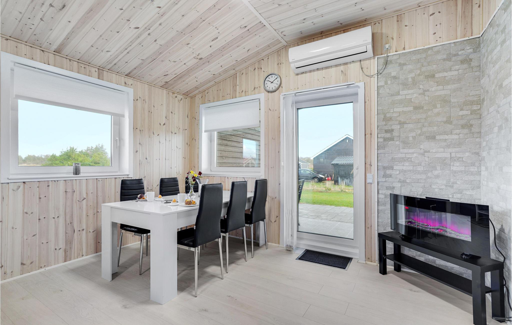 Freuen Sie sich auf einen entspannenden Aufenthalt in diesem wunderbaren Holzhaus aus dem Jahr 2020. Die Zimmer des Hauses sind hell eingerichtet und die Wänder schön mit Holz bekleidet. Die Küche ist gut ausgestattet und Sie können sich hier ganz nett und ohne Stress kulinarisch entfalten und gleichzeitig durch kleine Fenster ins Wohnzimmer zu den übrigen Gästen blicken. Vom Wohnzimmer aus gelangen Sie auf eine gemütliche und teilweise überdachte Terrasse mit Grill, wo Sie an Sommerabenden am Esstisch gemeinsam essen oder bei sonnigem Wetter auf den Liegestühlen entspannen können. Das Highlight dieses Hauses bildet jedoch das Badezimmer, wo Sie sich im Whirlpool oder in der Sauna richtig entspannen können.