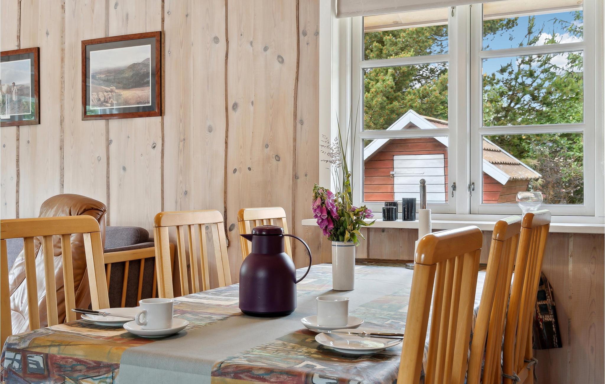 Auf einem schön bepflanzten Grundstück, nicht weit vom Ringkøbing Fjor, liegt dieses gemütliche Ferienhaus. Es verfügt über eine Wohnküche mit Wärmepumpe und Kaminofen, 2 gute Zimmer, davon eins mit Doppelbett, und ien Bad mit Dusche. Draußen befindet sich eine gute Terrasse sowie eine Schaukel und ein Sandkasten für die Kinder. Die Umgebung ist ein schönes Naturgebiet mit guten Wegen für Wanderungen. Für Ausflüge bietet sich der Stauning Flughafen mit einer Ausstellung alter Flugzeuge und Ringkøbing, eine beschauliche alte Stadt mit Geschäften und restaurants, an.