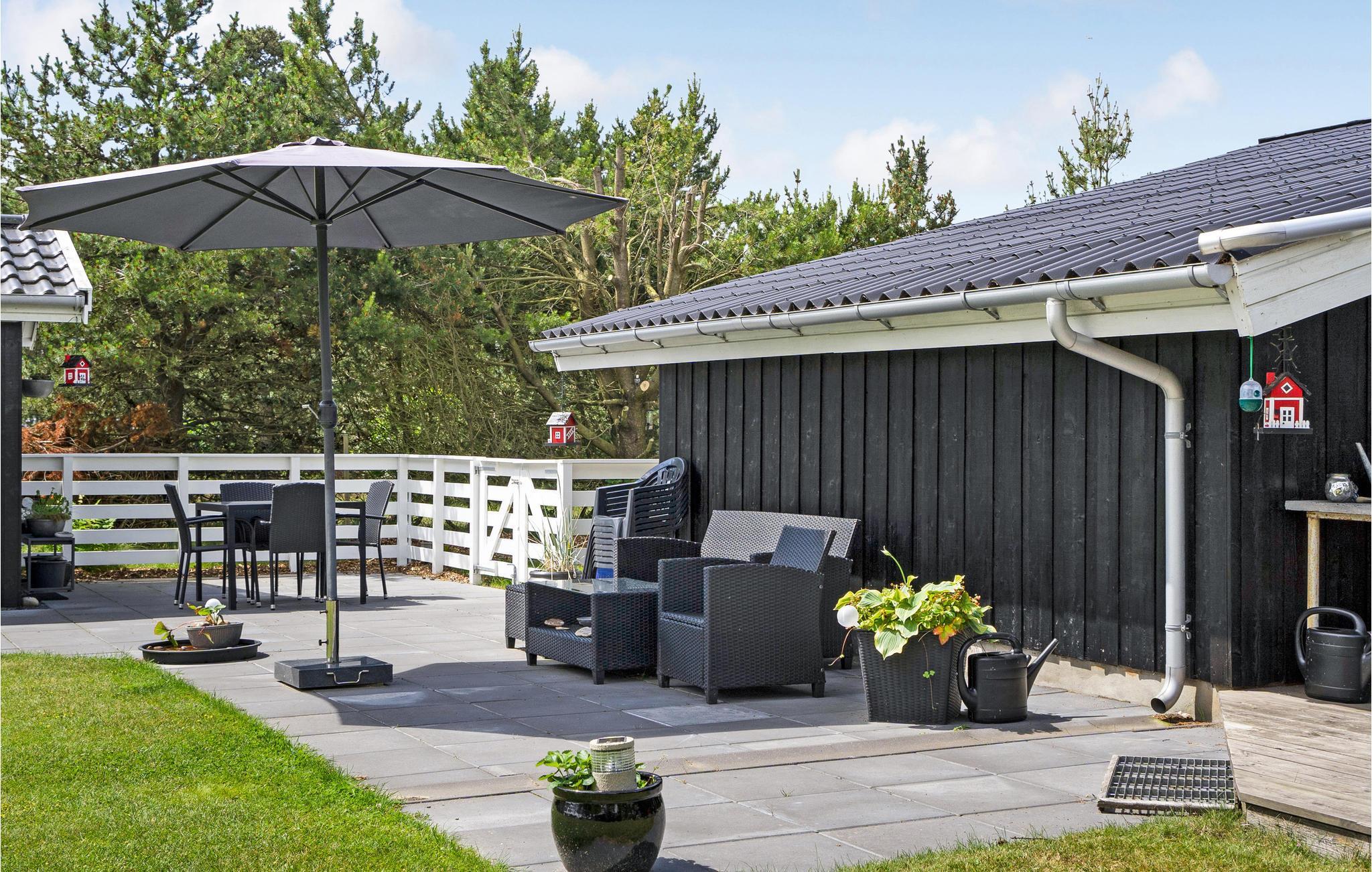 Gemütliches Ferienhaus mit finnischem Holzbad und Terrasse nahe Fjord in Skjern, Dänemark.
