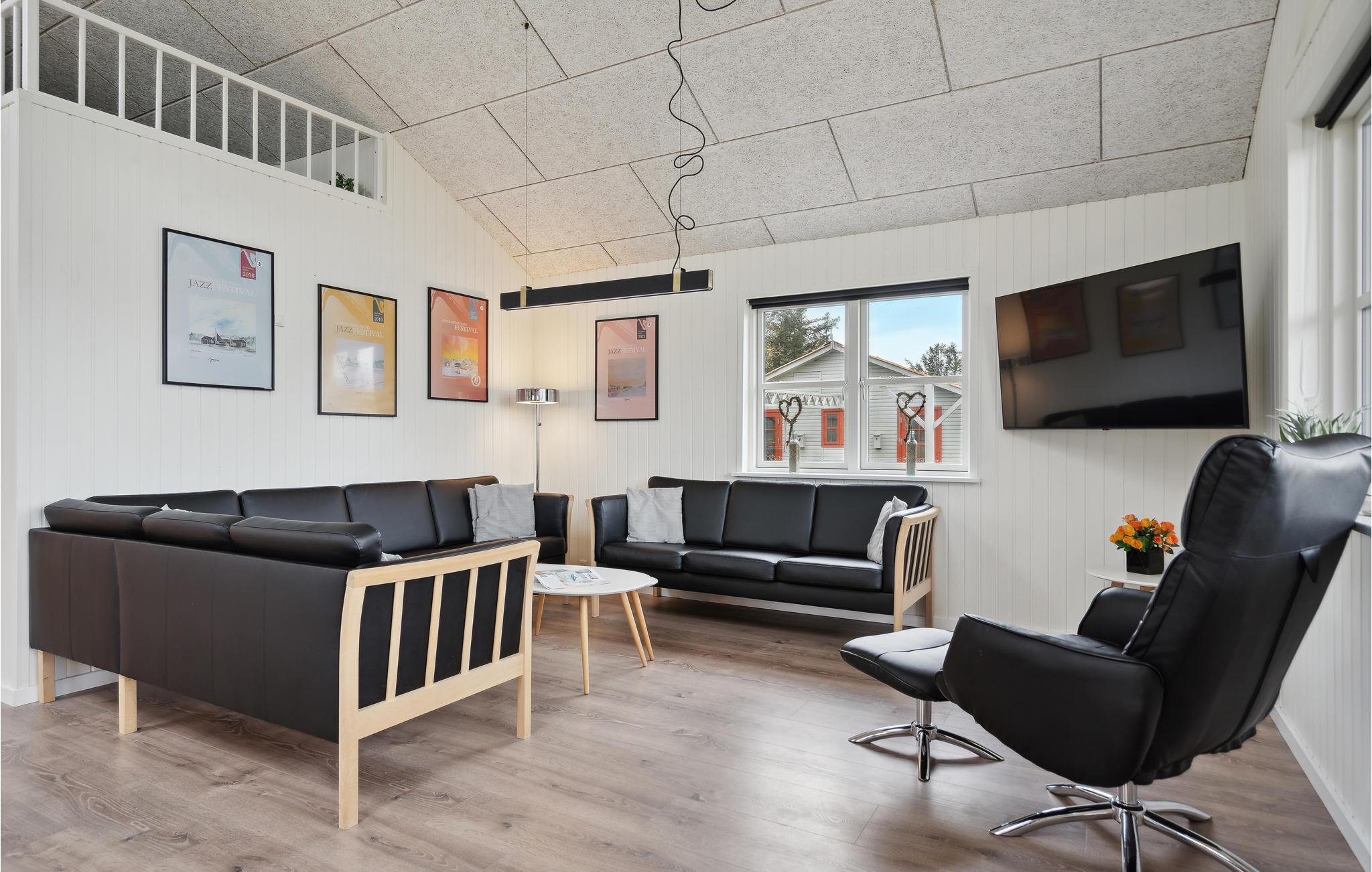 In Stauning, in der Nähe des Ringköbing Fjords, empfängt Sie dieses großartige Ferienhaus. Von außen wirkt der Charme der urigen Holzverkleidung, während im Inneren die hellen Wände und komfortablen Mäbel Ihnen Raum zum Entspannen geben. Genießen Sie im Wohnzimmer den Lichteinfall durch die Dachfenster und blicken Sie vom Sofa in den Himmel. Treten Sie am Morgen vom Wohnraum auf die Terrasse und genießen das Vogelzwitschern und die Ruhe der Morgenstunden beim Kaffeetrinken. Während Ihre Kinder sich auf dem Rasen austoben, können Sie in der Fasssauna schwitzen oder im Finnischen Holzbad relaxen. Ihre Kinder können auch die Nächte in Ihrem privaten Shelter übernachten und die Nacht im Freien zu einem Abenteuer machen.