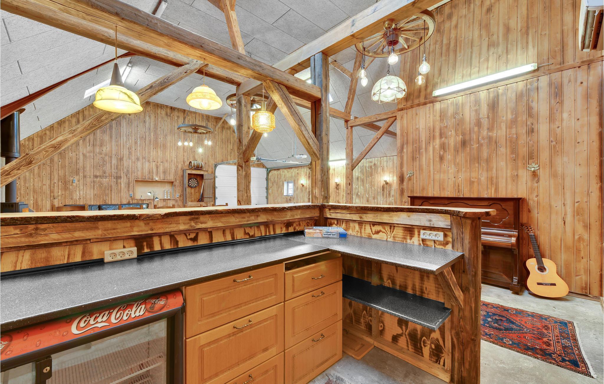 Dieses charmante Ferienhaus befindet sich mit einer atemberaubenden Aussicht auf den Ringkøbing-Fjord in einer malerischen Gegend bei Stauning zwischen Skjern und Ringkøbing. Es bietet Platz für bis zu 22 Gäste, sodass Sie die ganze Familie mitnehmen können. Das Haus verfügt über insgesamt 9 Schlafzimmer. Eines der Zimmer ist ein Familienzimmer mit einem Doppelbett sowie einem Etagenbett. Es hat Zugang zur Terrasse und einen schönen Blick auf den Fjord. Das Haus verfügt über 3 Badezimmer und einen schönen Wellnessbereich mit einem kleinen Pool von 8 m² und einer Sauna. Die Küche ist mit einem großen Kühl-/Gefrierschrank, 2 Öfen, Geschirrspüler und mehr sehr gut ausgestattet.