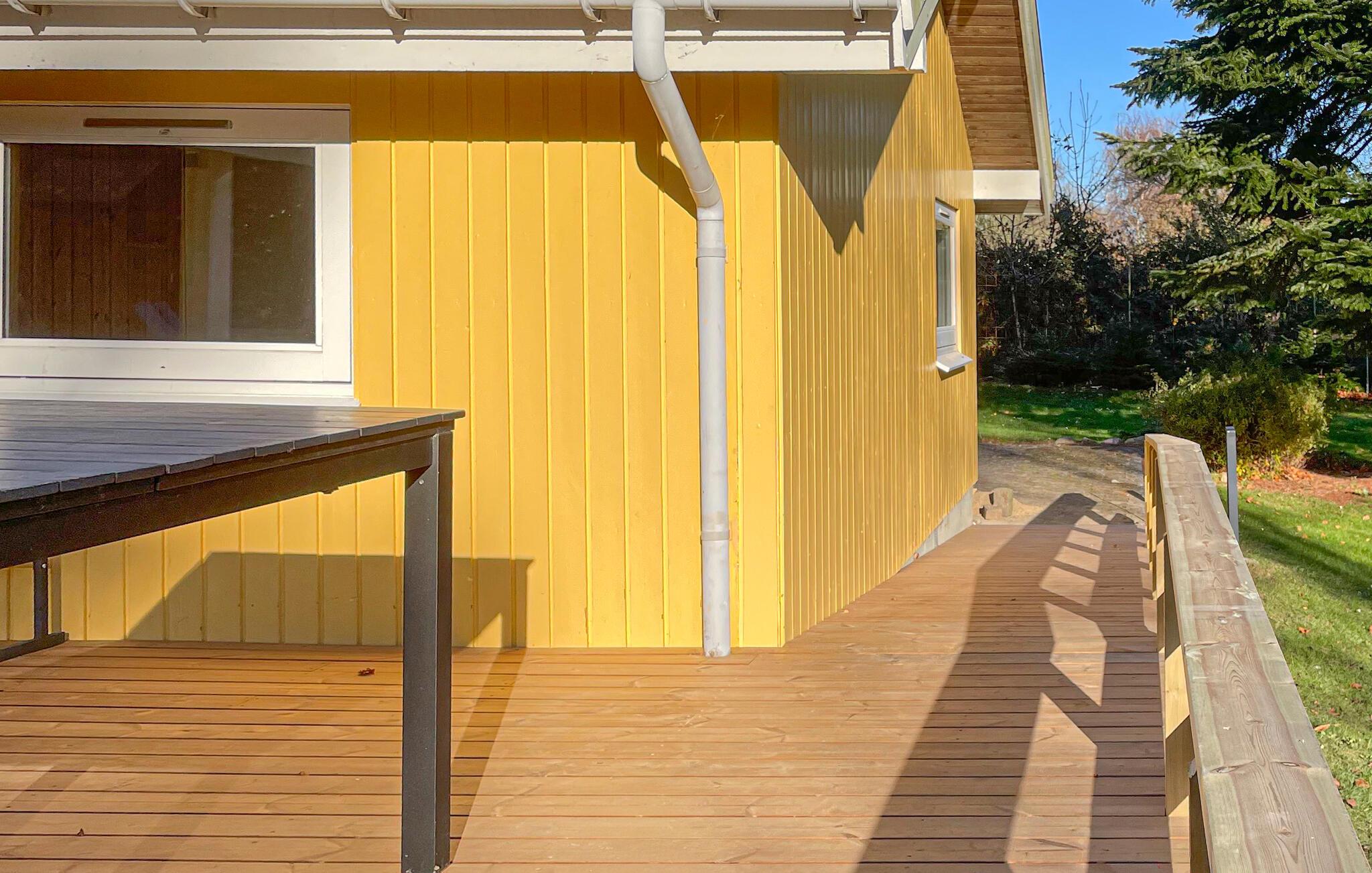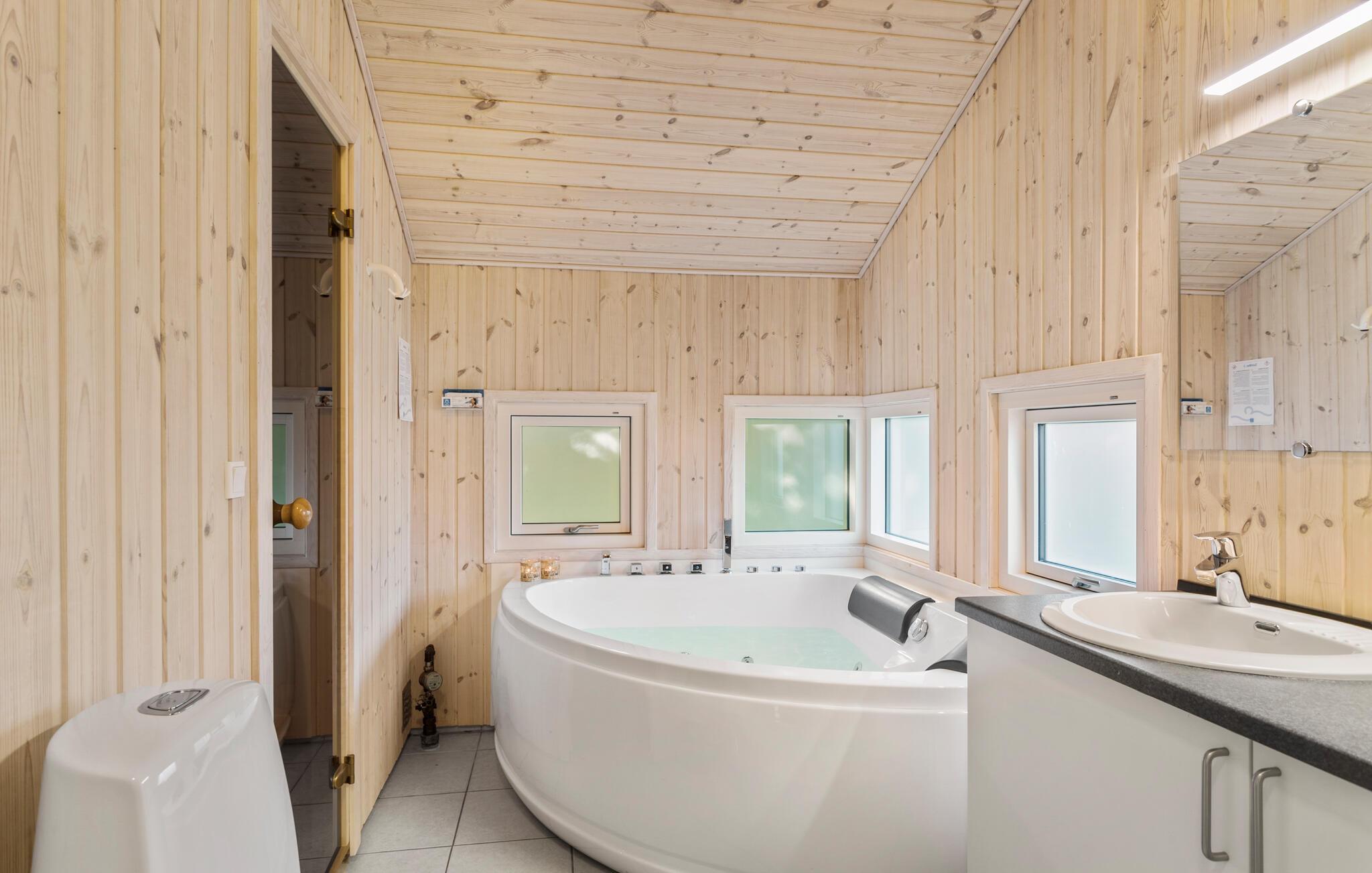 Erleben Sie erholsame Tage in diesem Ferienhaus auf Langeland mit Whirlpool, Sauna und großem Garten.