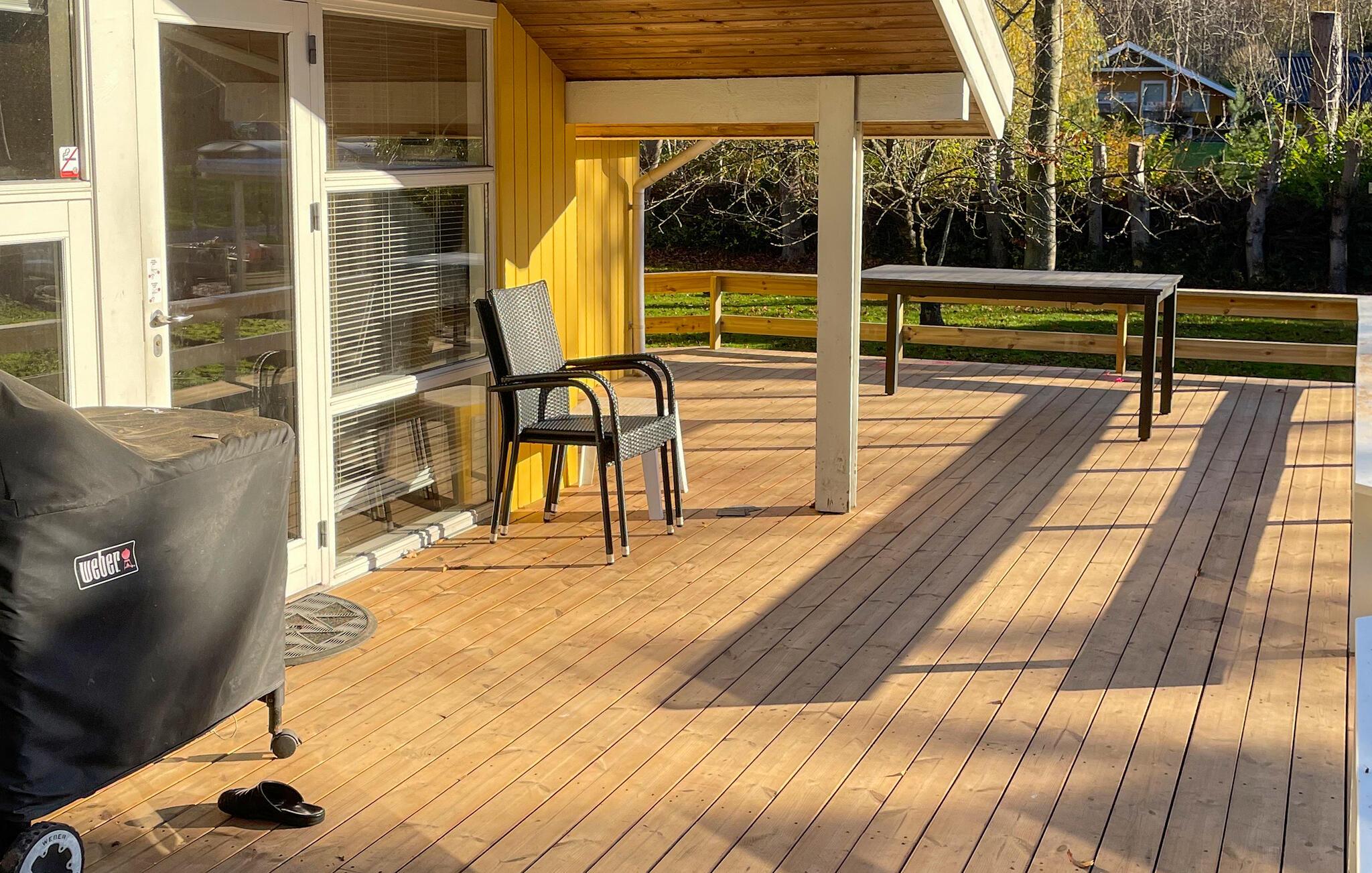 Ihr gemütliches Ferienhaus in Strandnähe bietet Ihnen einen schönen, großen Garten und besticht darüber hinaus durch eine großzügige Terrasse, die zu geruhsamen Stunden an der frischen Luft einlädt. Nutzen Sie den Grill für gesellige Abende im Freien und lassen Sie den Tag bei einem leckeren Essen ausklingen. Die komfortable Sofaecke im Wohnzimmer bietet Ihnen einen idealen Rückzugsort zum Entspannen, während die offene Küche alles bereitstellt, was Sie für gemeinsame Mahlzeiten benötigen. Am Esstisch im Wohnbereich können Sie Ihre selbst zubereiteten Köstlichkeiten genießen.