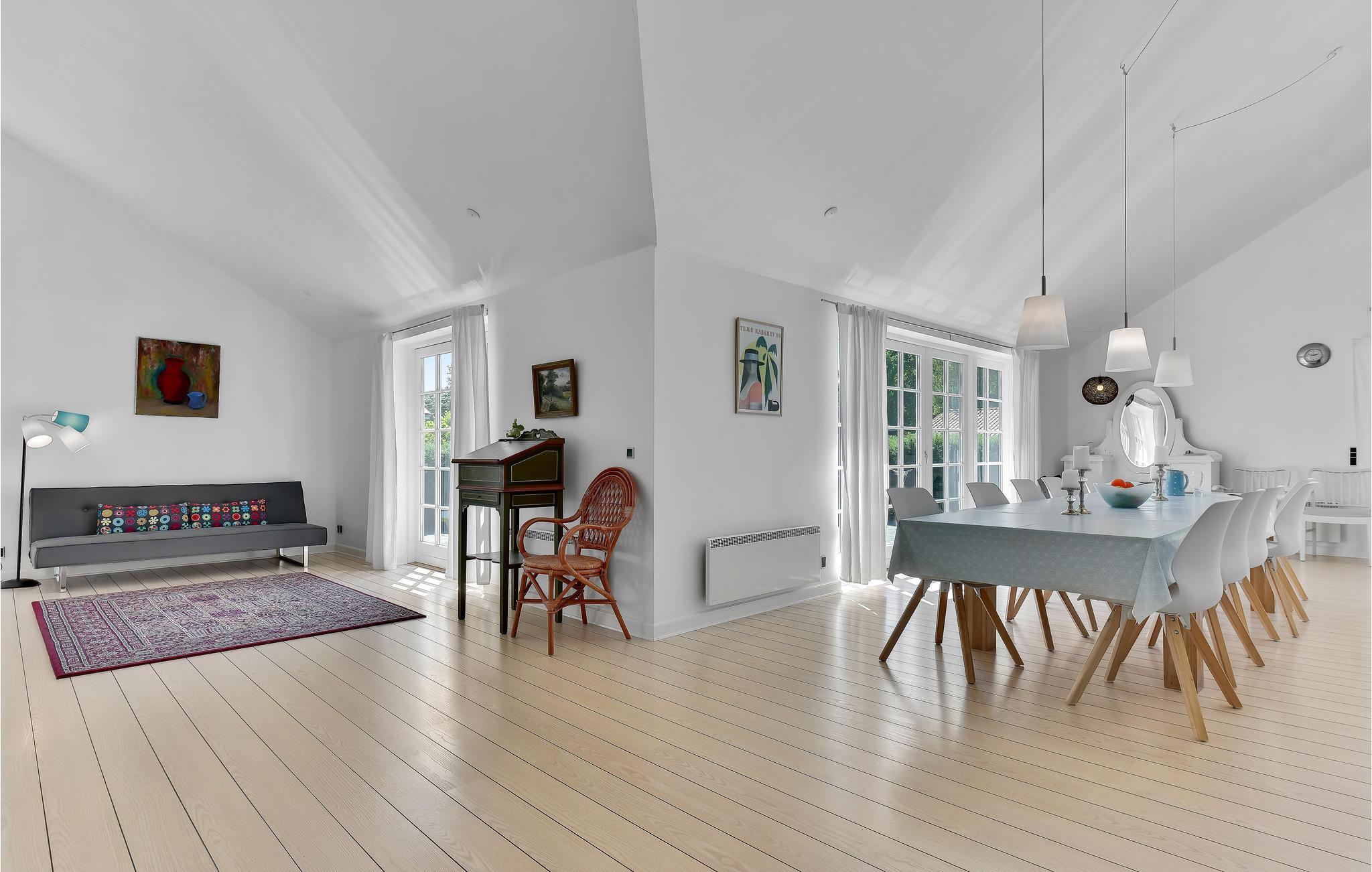 Wirklich geräumiges Ferienhaus mit großem Wohnraum, guten Schlafzimmern und zwei Badezimmern. Das Haus liegt auf einem großen Grundstück und in der Nähe von einem der besten Badestrände der Region. Sie können entweder mit dem Rad oder zu Fuß bequem nach Juelsminde kommen. Dort erwartet Sie dann ein charmanter Jachthafen mit einer guten Atmosphäre und mehreren guten Restaurants. Im Ort gibt es gute Geschäfte und auch einen Eisladen mit selbstgemachten Waffeln. Sie machen in der Nähe vom Legoland und dem Löwenpark Urlaub. Horsens ist etwas größer und liegt eine halbe Autostunden entfernt.