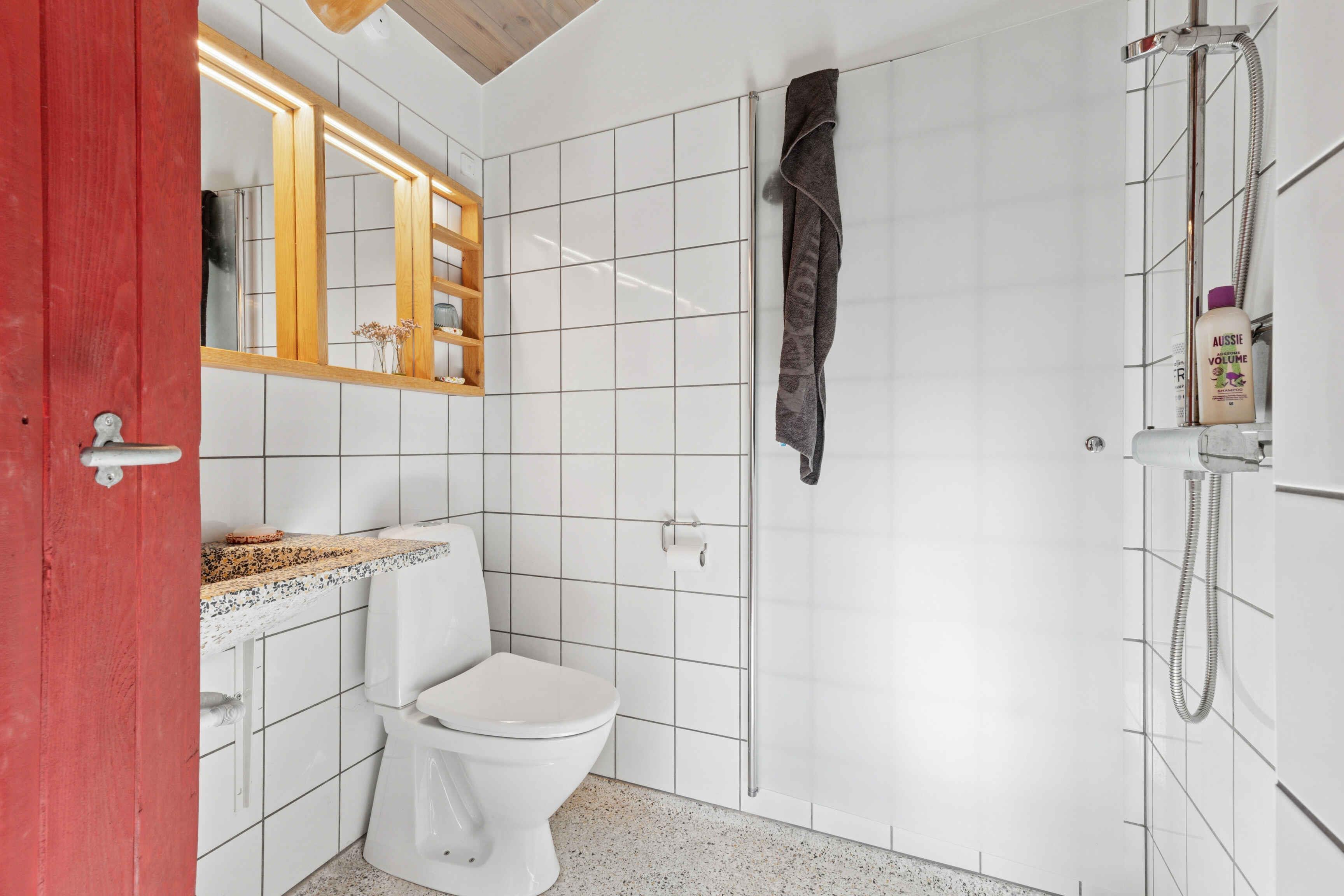 Schönes und großzügiges Ferienhaus aus Naturmaterialien auf einem ebenso schönen und ungestörten Naturgrundstück. Die Fassade ist mit elegant patiniertem Naturschiefer verkleidet. Das Dach ist mit Gras und Sedum begrünt, sodass sich das Haus harmonisch in die landschaftlich reizvolle Umgebung einfügt. Innen prägt die Rundstammkonstruktion die großen, hellen und freundlichen Räume. Das Haus ist von einer großen Terrasse mit Panoramablick über das Kattegat und die Muldbjerge umgeben. Vom Schuppen in der Ecke des Gartens führt ein kleiner Pfad zu einem herrlichen Aussichtspunkt oben auf dem Grundstück. Das Grundstück ist seit 30 Jahren im Familienbesitz. Das Haus wurde von Vater und Sohn neu gebaut und 2025 fertiggestellt. Das Haus liegt direkt an den Muldbjerge, die zu wunderschönen Spaziergängen einladen. Manche nutzen die Hügel auch zum Paragliding. Am kleinen Steg an der Teglvej (200 m vom Haus) gibt es gute Möglichkeiten, Seekajaks, Paddleboards und Windsurfer zu Wasser zu lassen. Zwei Paddleboards mit Handpumpe, Schwimmwesten und Paddel stehen im Schuppen kostenlos zur Verfügung. In fußläufiger Entfernung befindet sich der Steg in Dokkedal, wo man gut baden und Krabben fangen kann. Wir haben selbst die großen Sandbänke beim Steg immer zum Schwimmen und Sandburgenbauen genutzt. Das Ferienhaus liegt in Fahrradentfernung (5 km) zur Lille Vildmose, einem großen, geschützten Wildnisgebiet mit reichem und einzigartigem Tierleben. Jeweils 10 km südlich und nördlich liegen Øster Hurup und Hals, zwei Orte mit lebhaftem Stadt- und Hafenleben im Sommer. Aalborg ist nur 30 Autominuten entfernt und bietet zahlreiche Kultur- und Einkaufsmöglichkeiten.