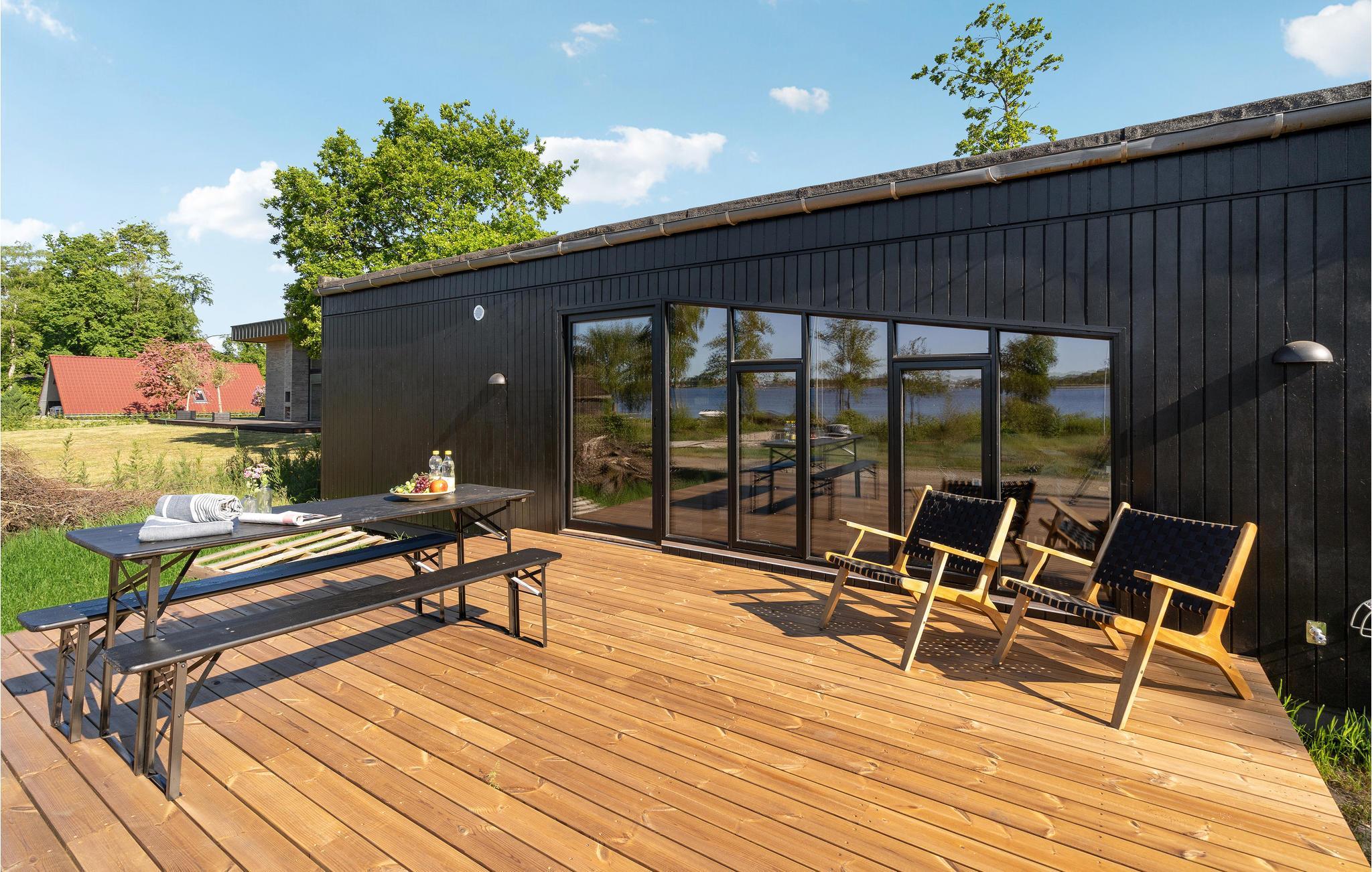 Modernes Ferienhaus am Sunds Sø mit Seeblick, Terrasse und stilvoller Einrichtung für erholsame Tage in der Natur.
