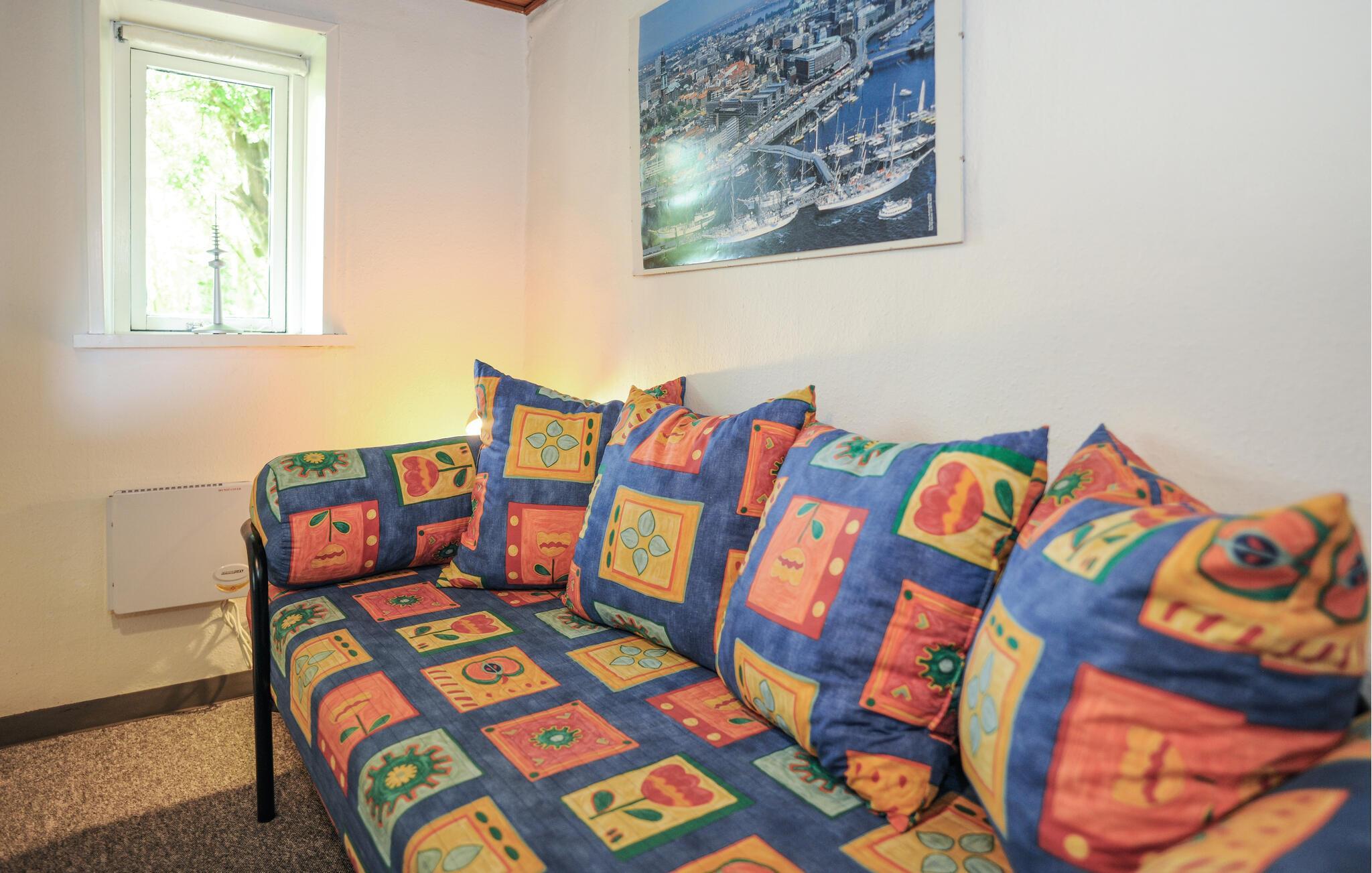 Verbringen Sie Zeit in dem traditionell eingerichteten Innenbereich mit viel Holz und schlicht-gemütlicher Ausstattung. Der kombinierte Wohn- und Essbereich ist mit bequemen Sitzmöbeln, einem Fernseher und einem großen Esstisch möbliert. In der separaten Küche mit klassischen Holzfronten finden Sie alles Notwendige für die Selbstverpflegung. Nutzen Sie die ruhige Atmosphäre für entspannte Stunden mit einem Buch oder Gesellschaftsspielen.